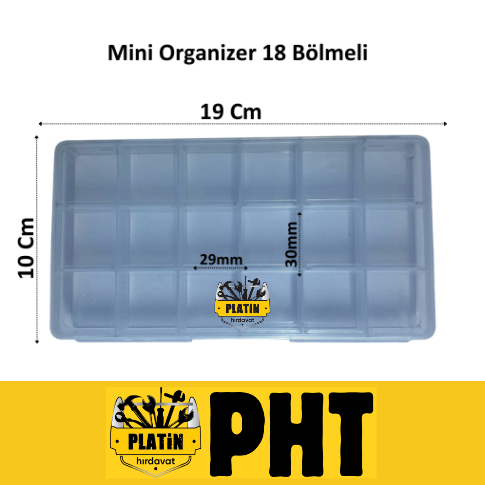 PHT Platin Hırdavat Mini Organizer Şeffaf Kutu Hobby, Takı, Boncuk,18 Bölmeli ( 19Cm x 10Cm ) plt2800018m
