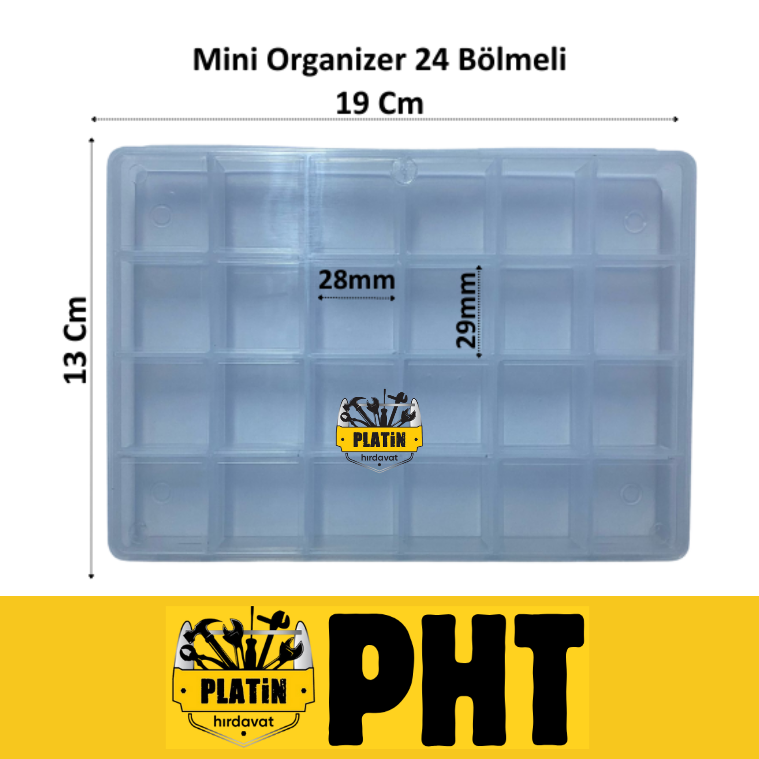 PHT Platin Hırdavat Mini Organizer Şeffaf Kutu Hobby, Takı, Boncuk, 24 Bölmeli (19Cm x 13 Cm ) plt2800024m