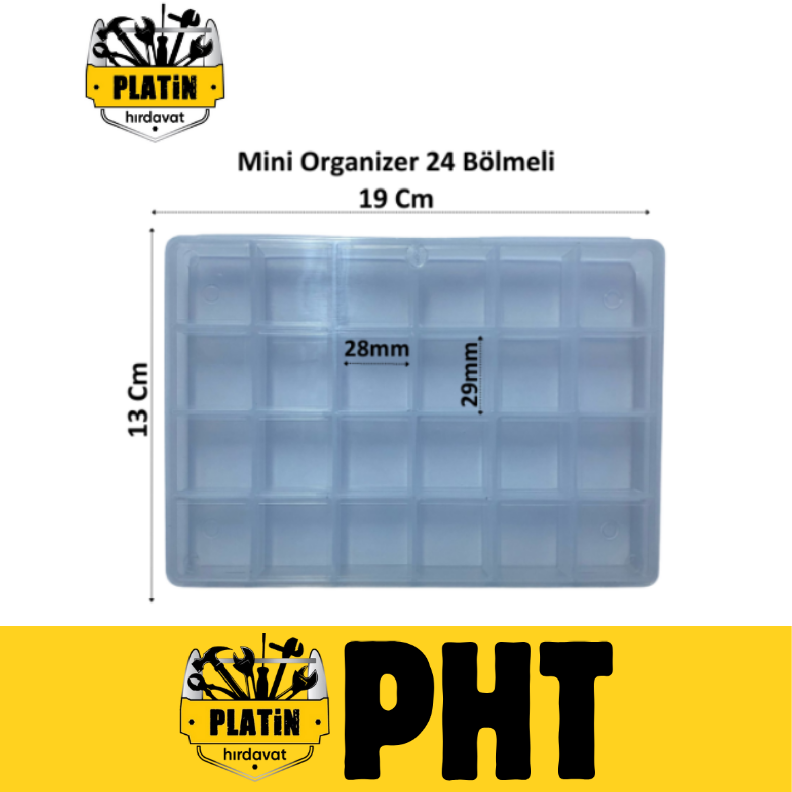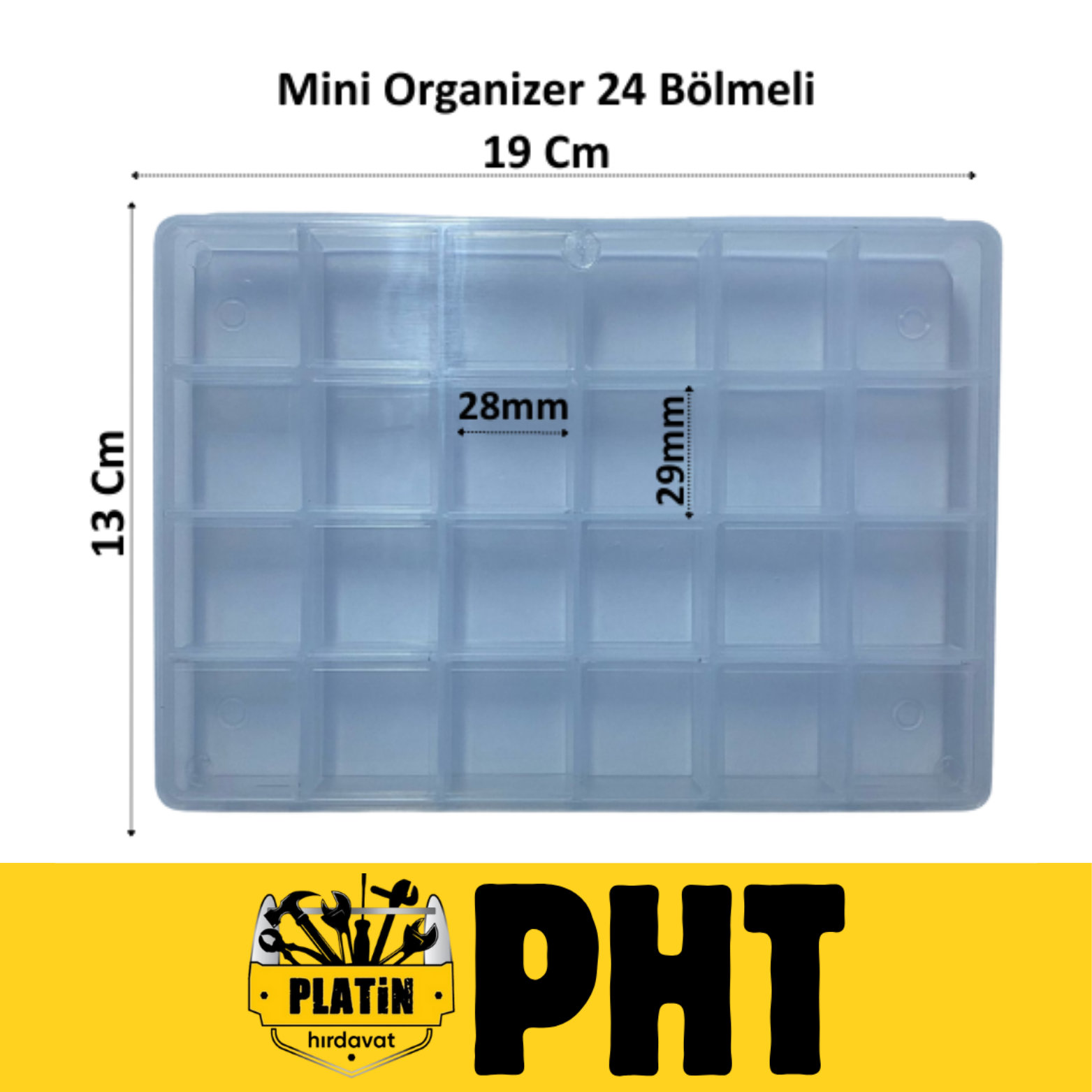PHT Mini Organizer Şeffaf Kutu Hobby, Takı, Boncuk, 24 Bölmeli (19Cm x 13 Cm ) plt2800024m ( 10 Adet )