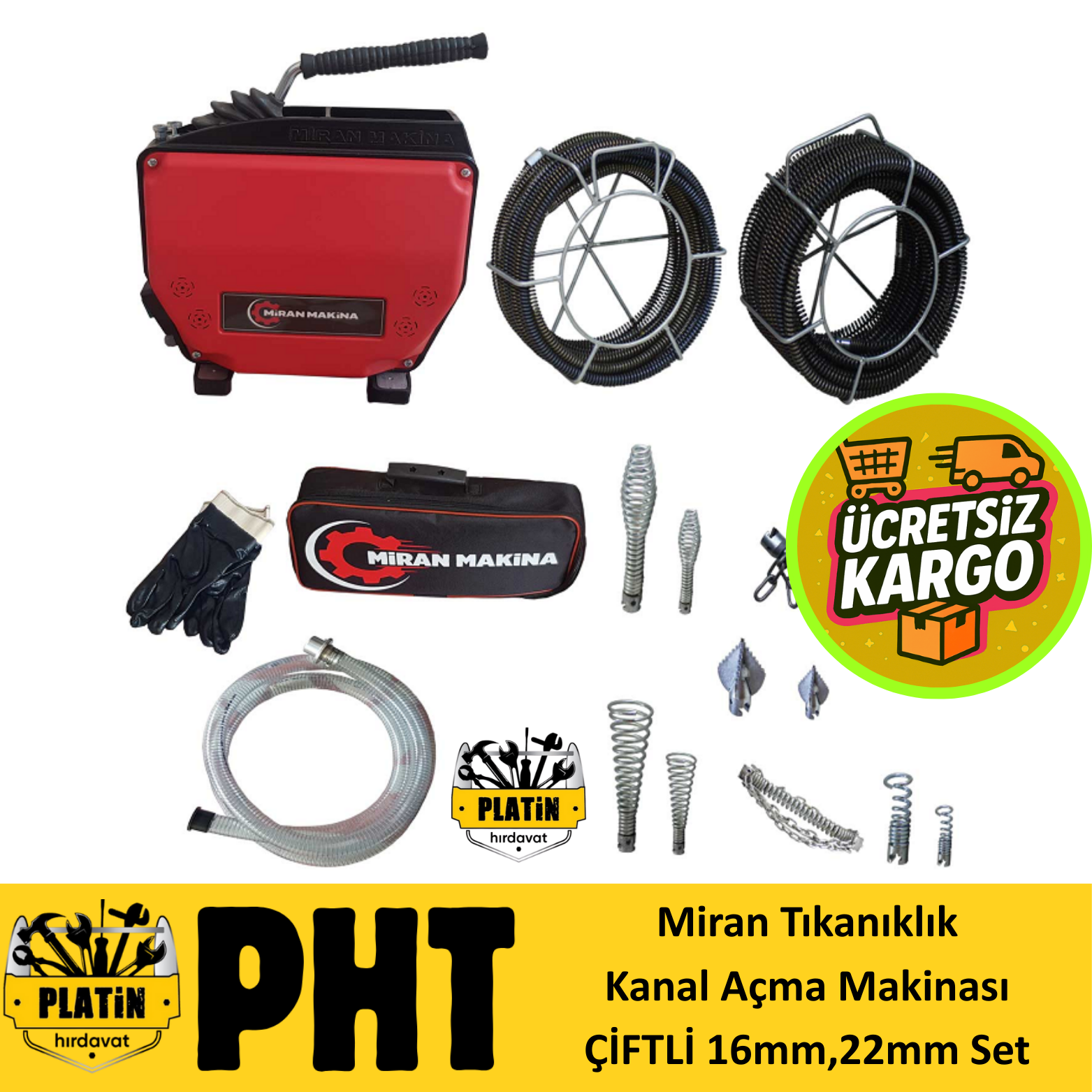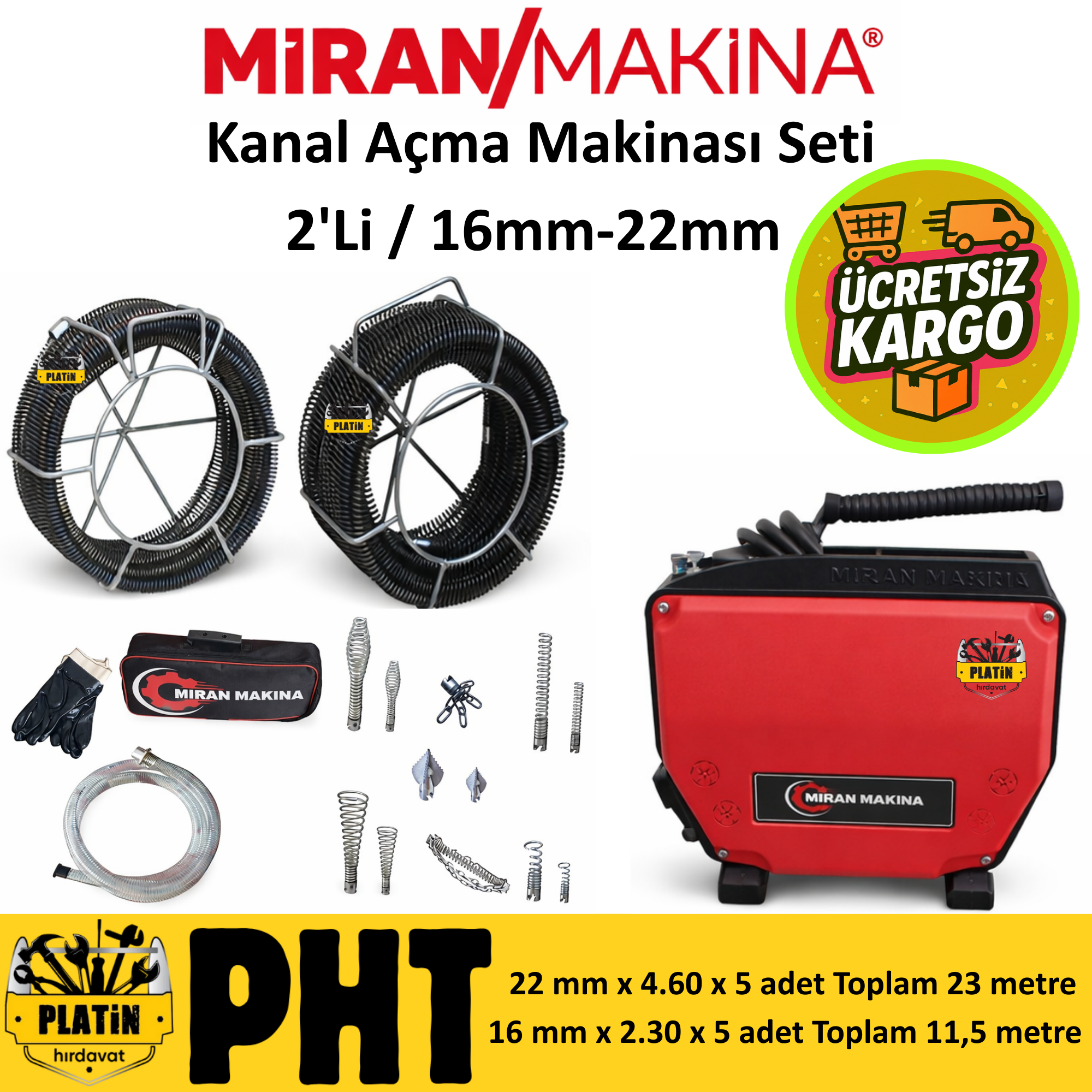 Miran Tıkanıklık Kanal Açma Makinası 22/16 mm spirali 2' Li set PLT28000012