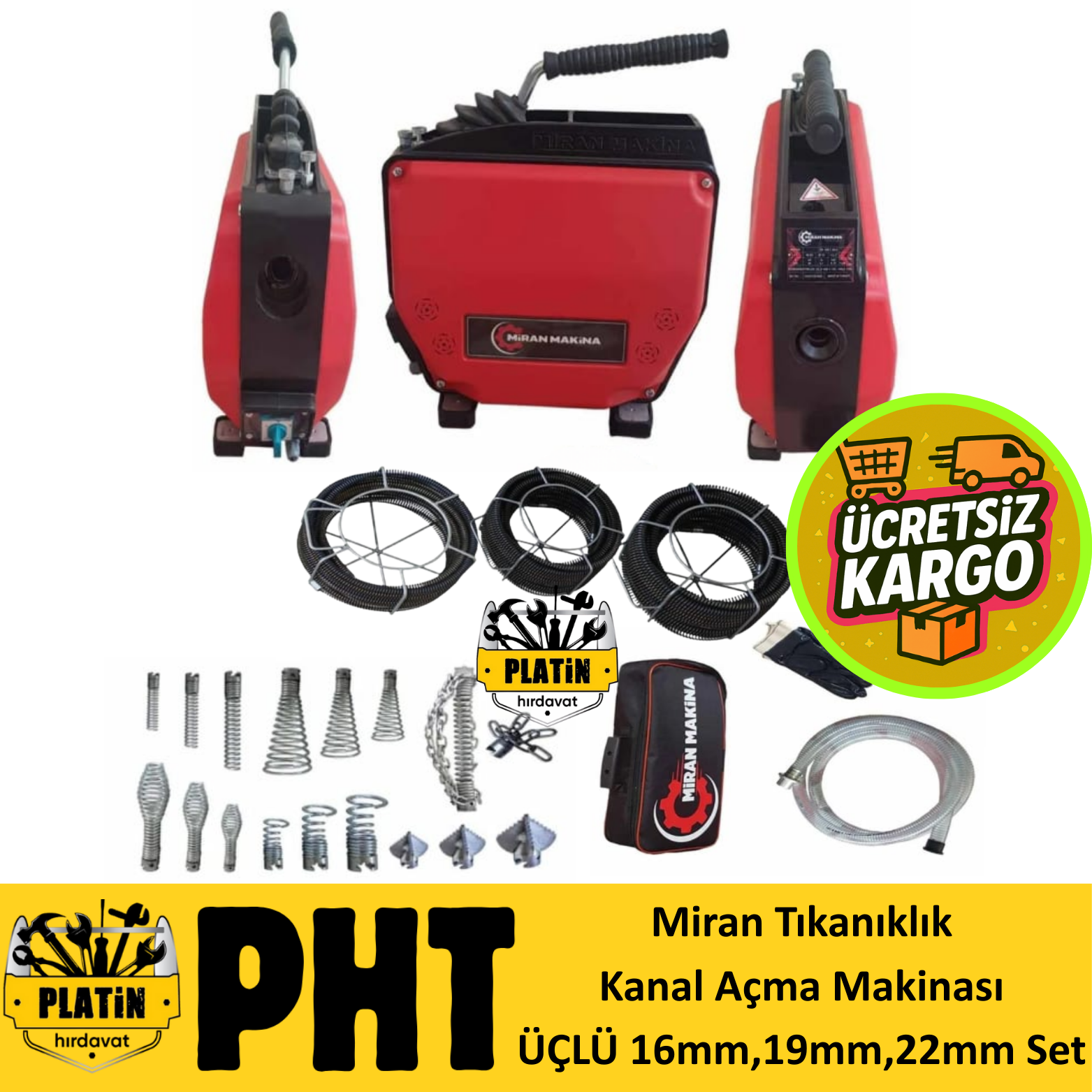 Miran Tıkanıklık Kanal Açma Makinası 22/19/16 mm spirali 3' Lü set 12689