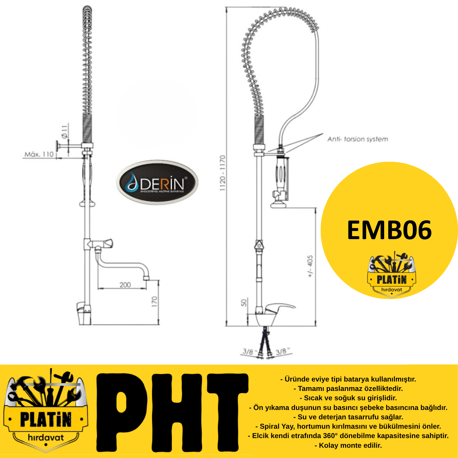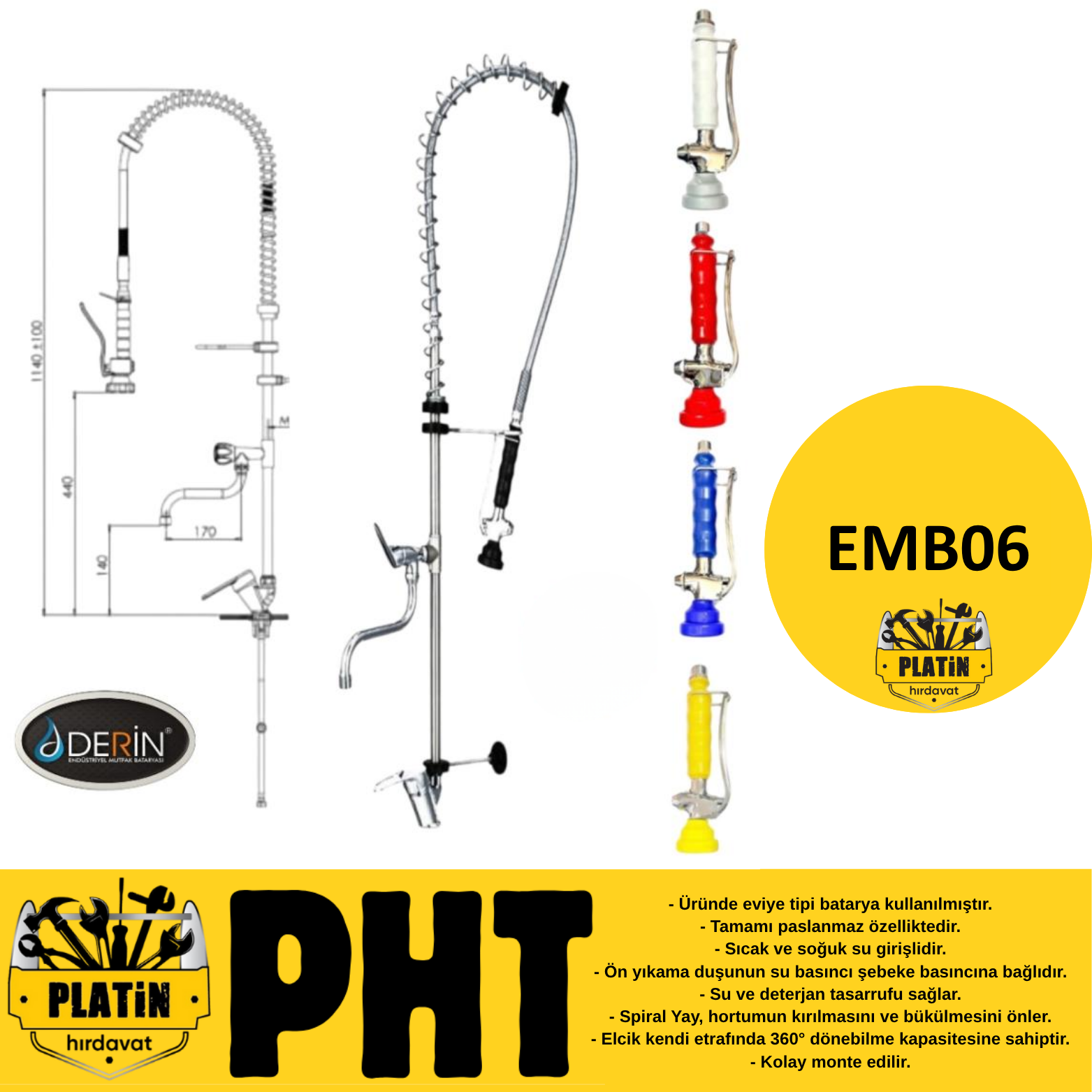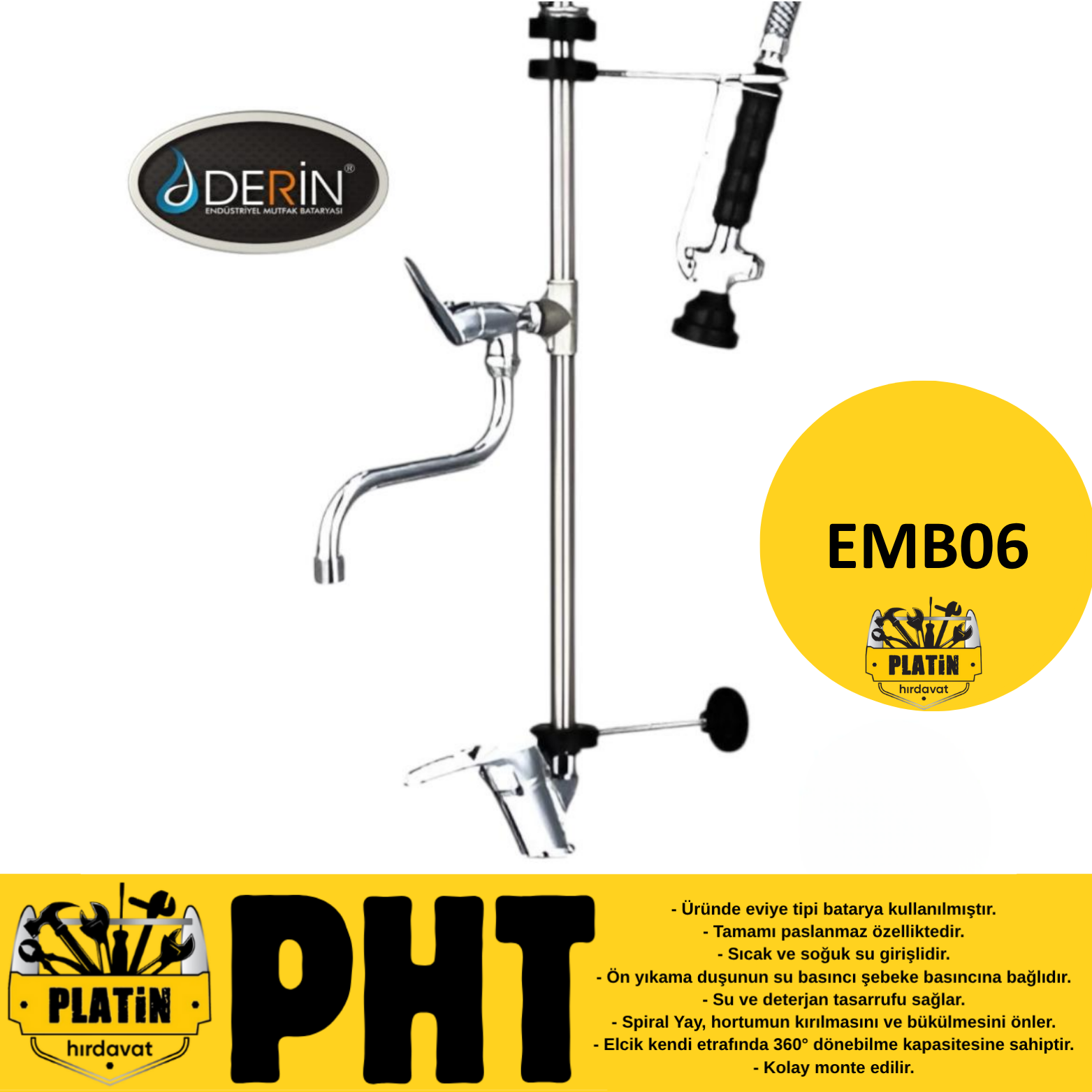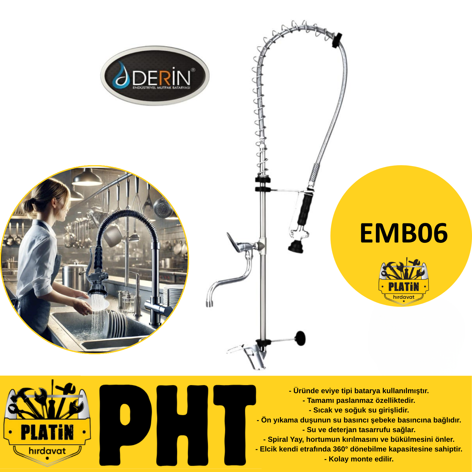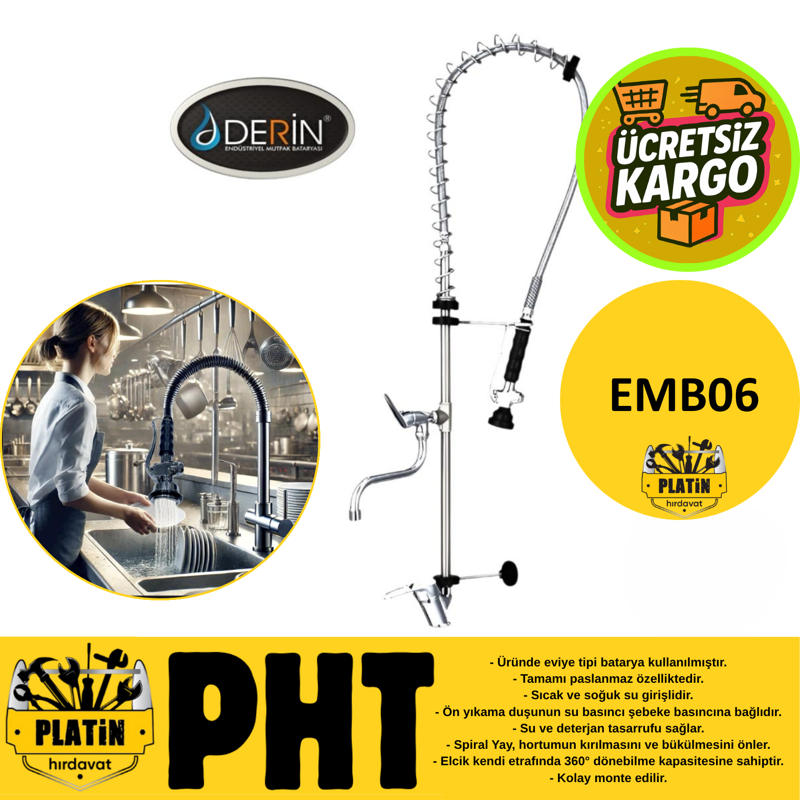 Derin Mutfak Bataryası Endüstriyel Çift Fonksiyonlu Ara Musluklu, Esnek Yaylı Batarya EMB06