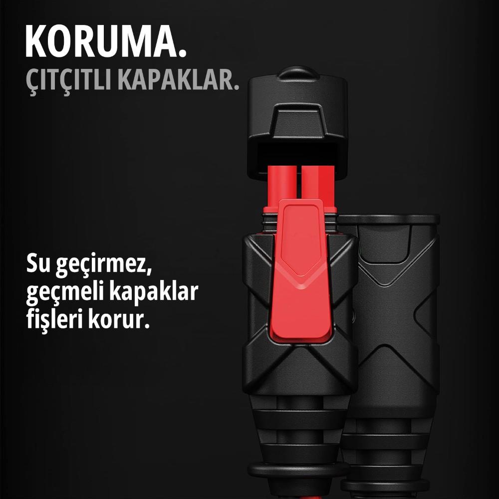 • X-Connect Noco kolay bağlantı sistemi ile kolayca şarj aletinize ve akü bağlantı maşalarına bağlama imkânı.