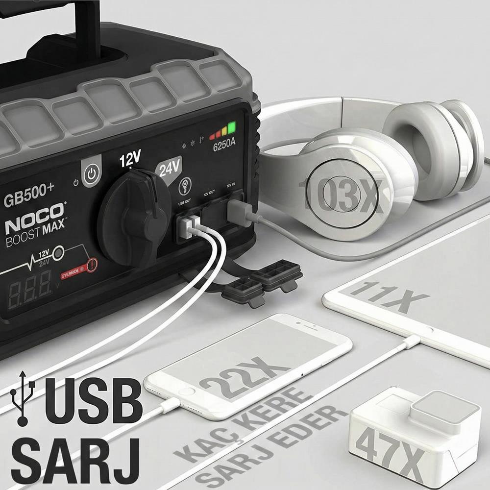 · NOCO Genius GB500 12V/24V 6250Amp Ultrasafe Lityum Akü Takviye + Powerbank + Led Lamba