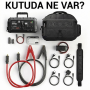 · İçindekiler; Ağır hizmet tipi akü bağlantı kıskaçları, şarj kablosu ve adaptörü, 12Volt çakmak çıkışı, 12Volt çakmaklık şarj başlığı, Ağır hizmet tipi taşıma çantası,