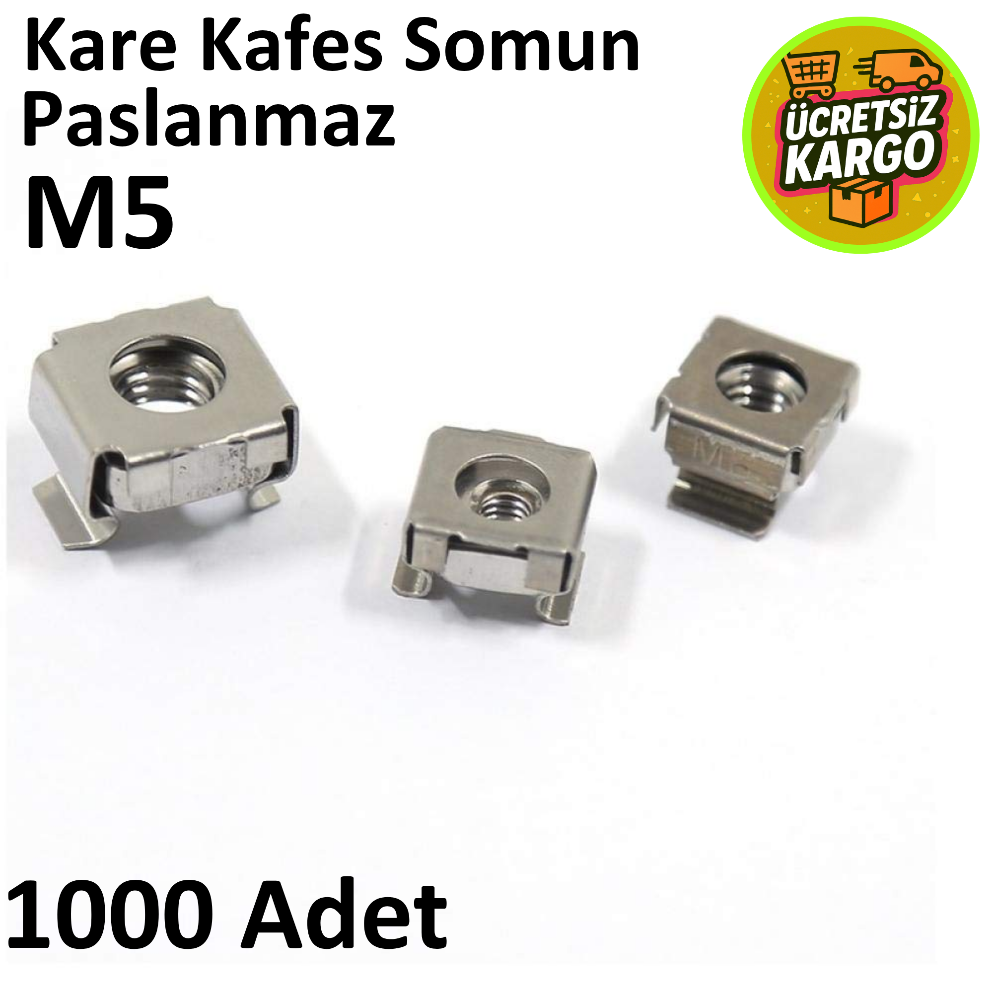 Paslanmaz Kafes Somun M5, Kare Somun, Kafes Somun Rack Kabinet ( 1000 Adet ) PKS0005