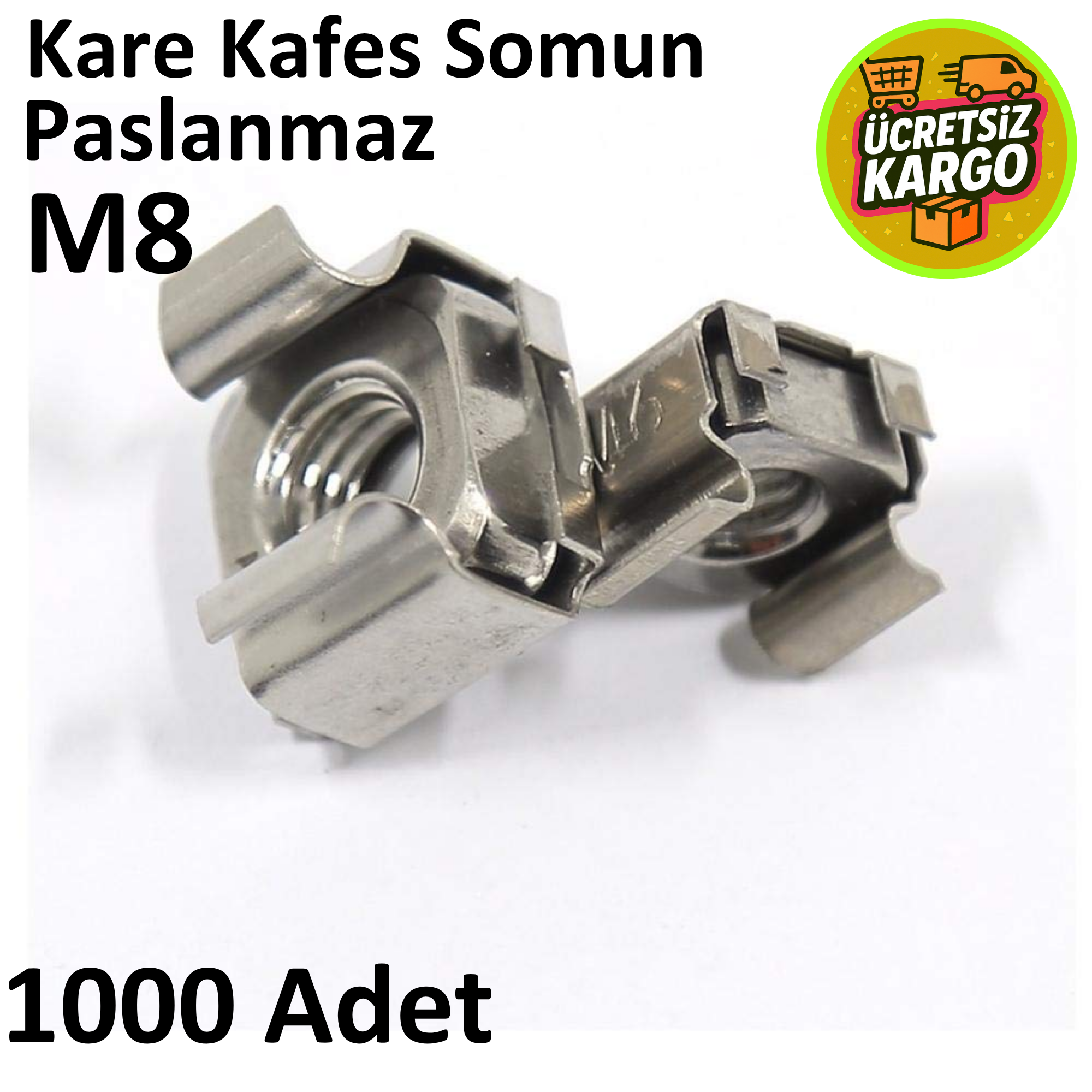 Paslanmaz Kafes Somun M8, Kare Somun, Kafes Somun Rack Kabinet ( 1000 Adet ) PKS0008