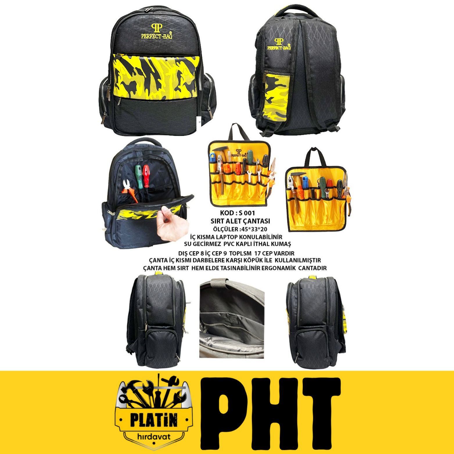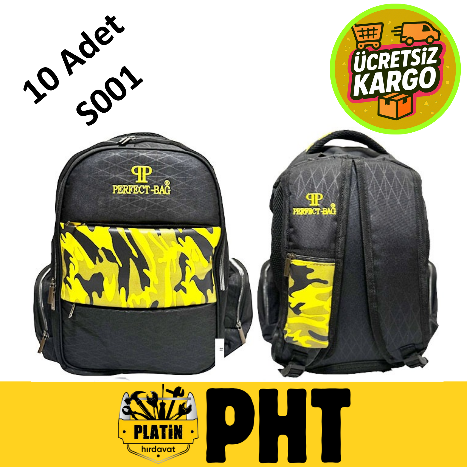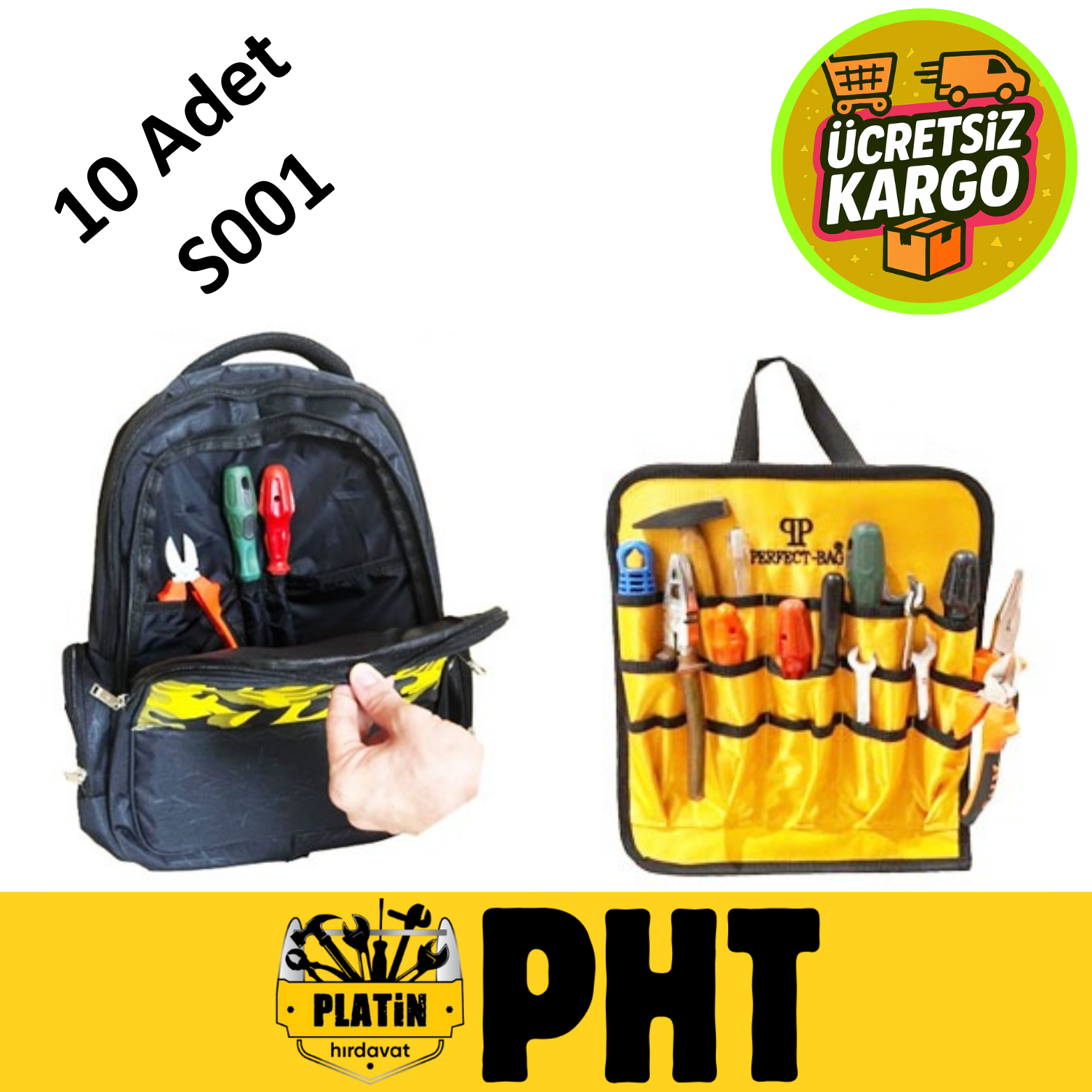 Perfect-Bag Sırt Alet Çantası – Su Geçirmez PVC Kaplı, 17 Cepli, Laptop veya Tablet Bölmeli ( 10 Adet ) S001