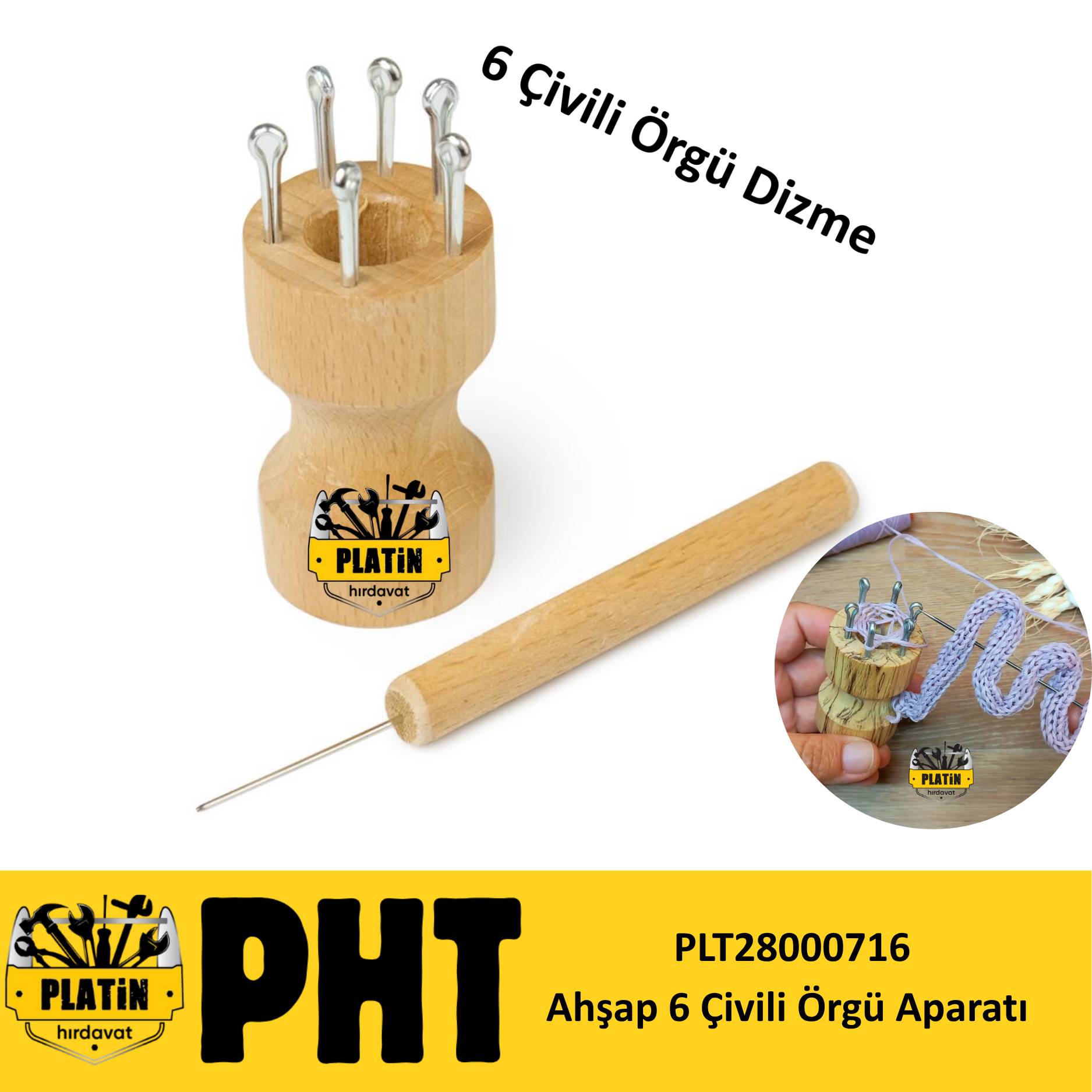 PHT Örgü Örme Aparatı Ahşap 6 Çivili Örgü Aparatı plt28000716