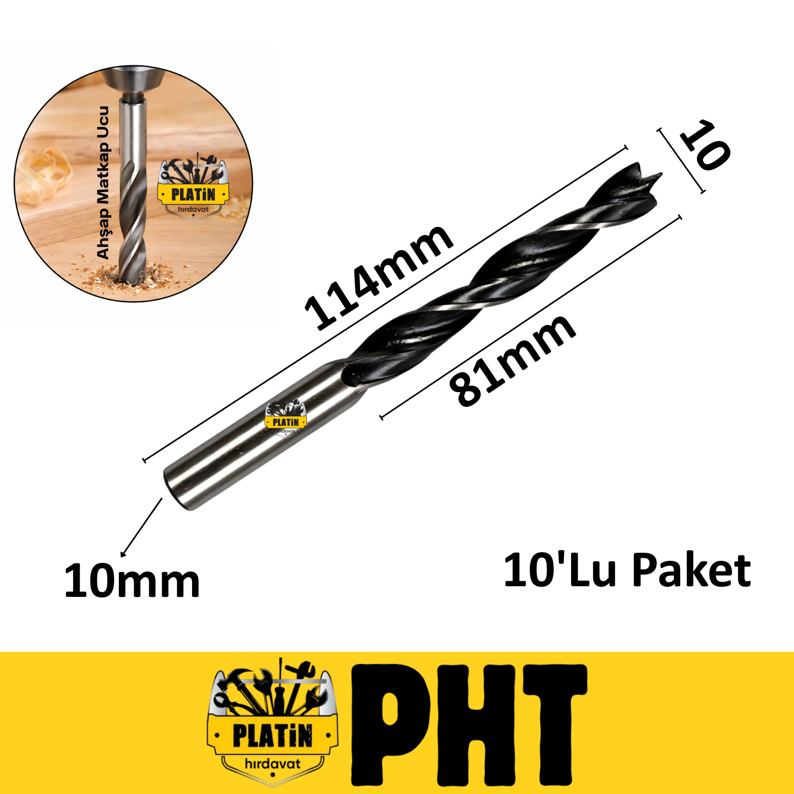 PHT Ahşap Matkap Ucu 10mm x 114mm ( 10 Adet ) PLT28000307