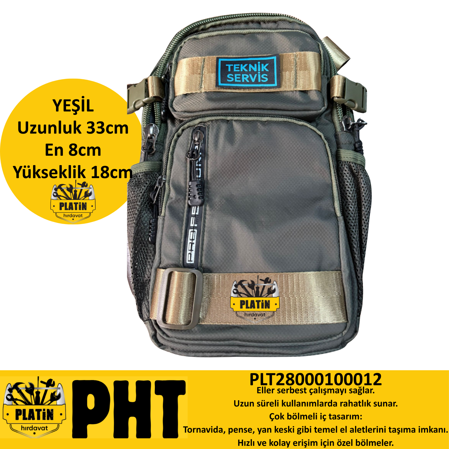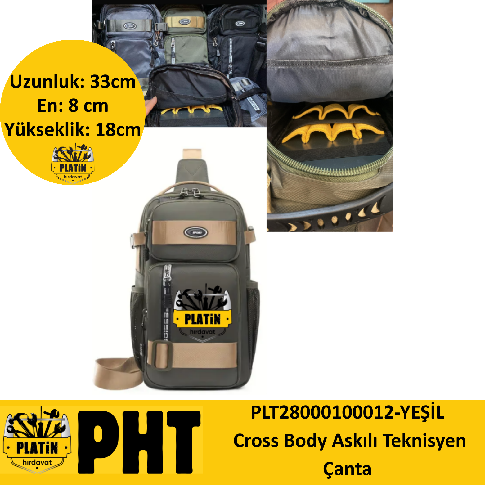 PHT Cross Body Askılı Teknisyen Çanta Haki Yeşili plt28000100012