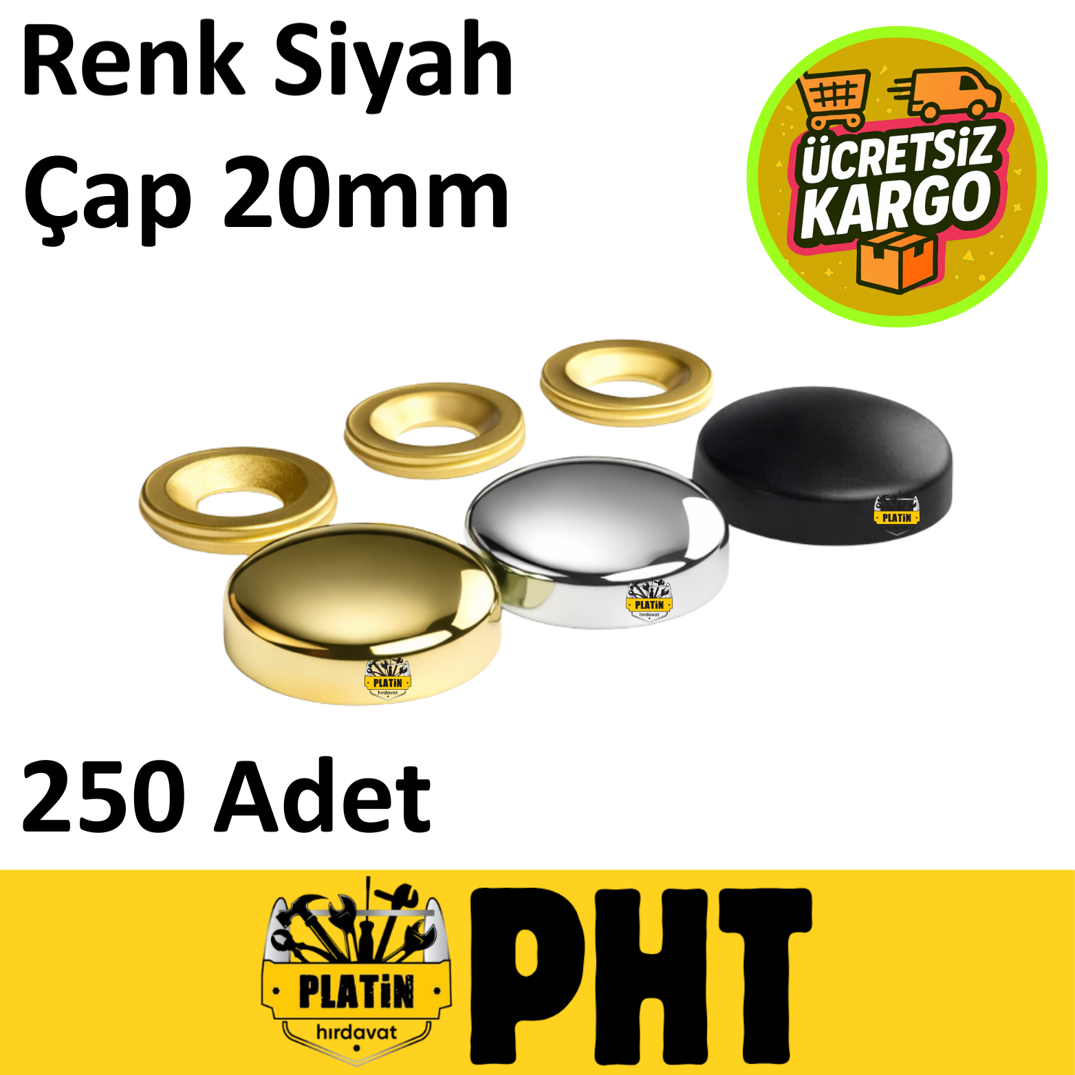 PHT Dekoratif Vida Kapağı Siyah Zamak 20mm ( 250 Adet ) PLT00015256