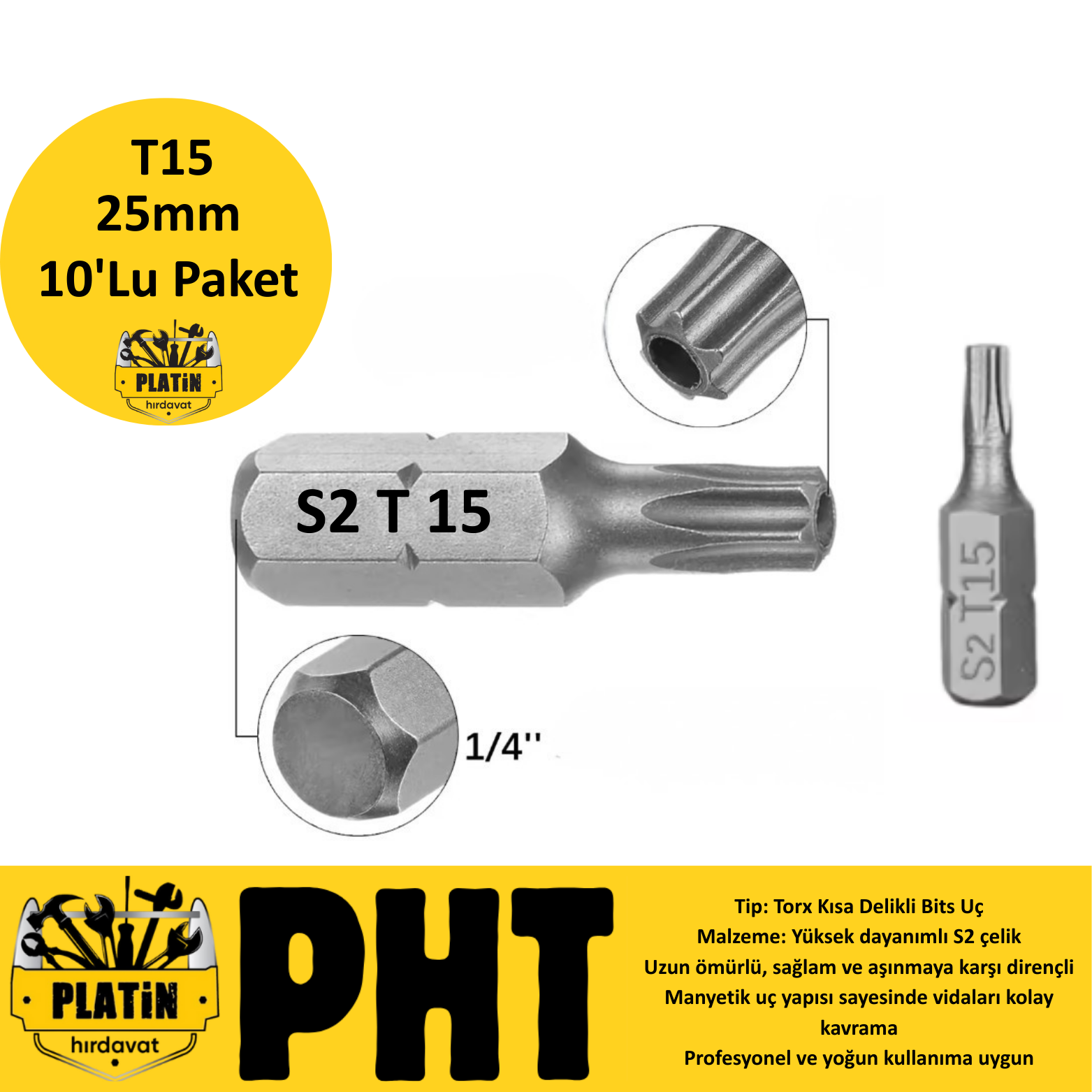 PHT Delikli Torx Bits Uç Kısa T15x25mm plt280011 ( 10 Adet )