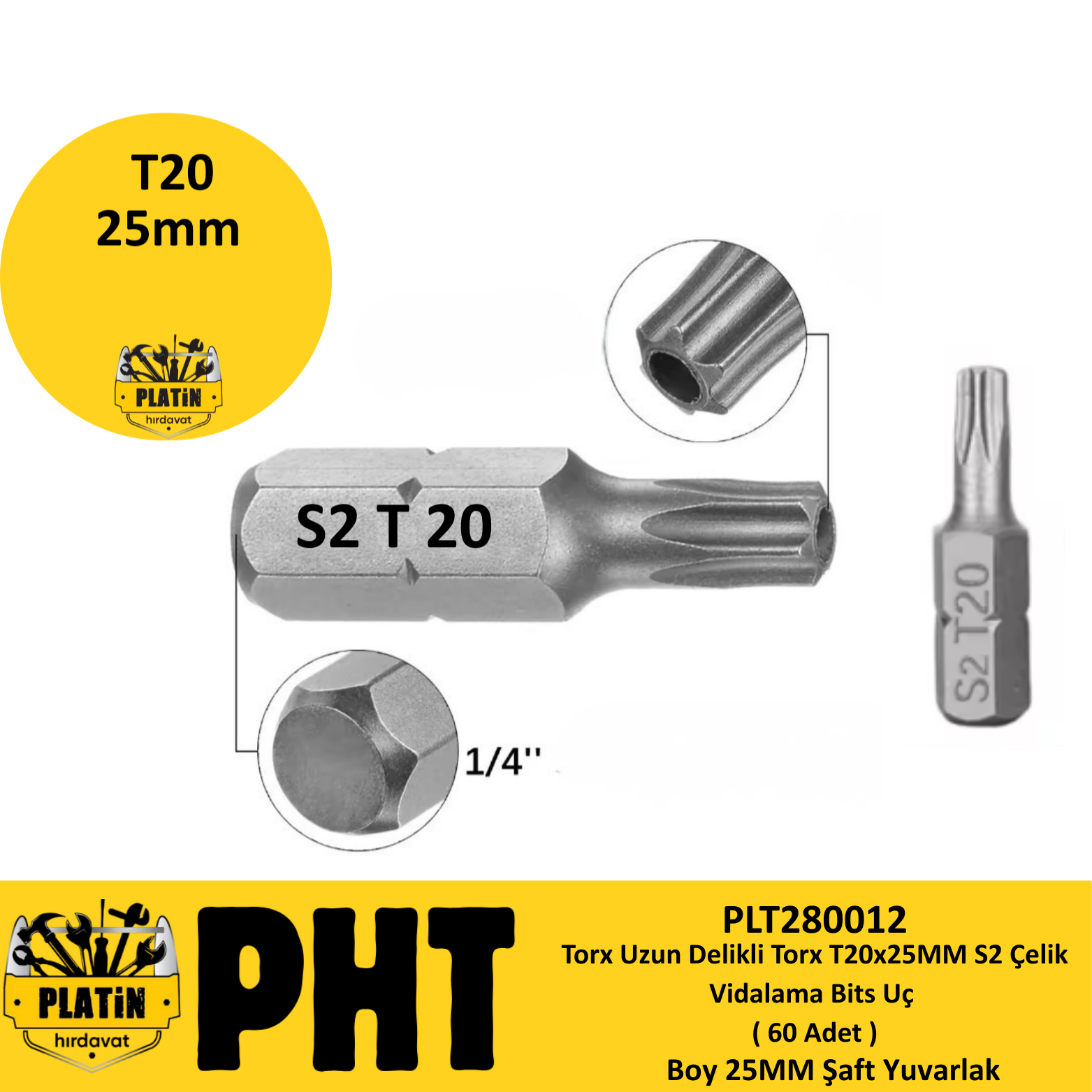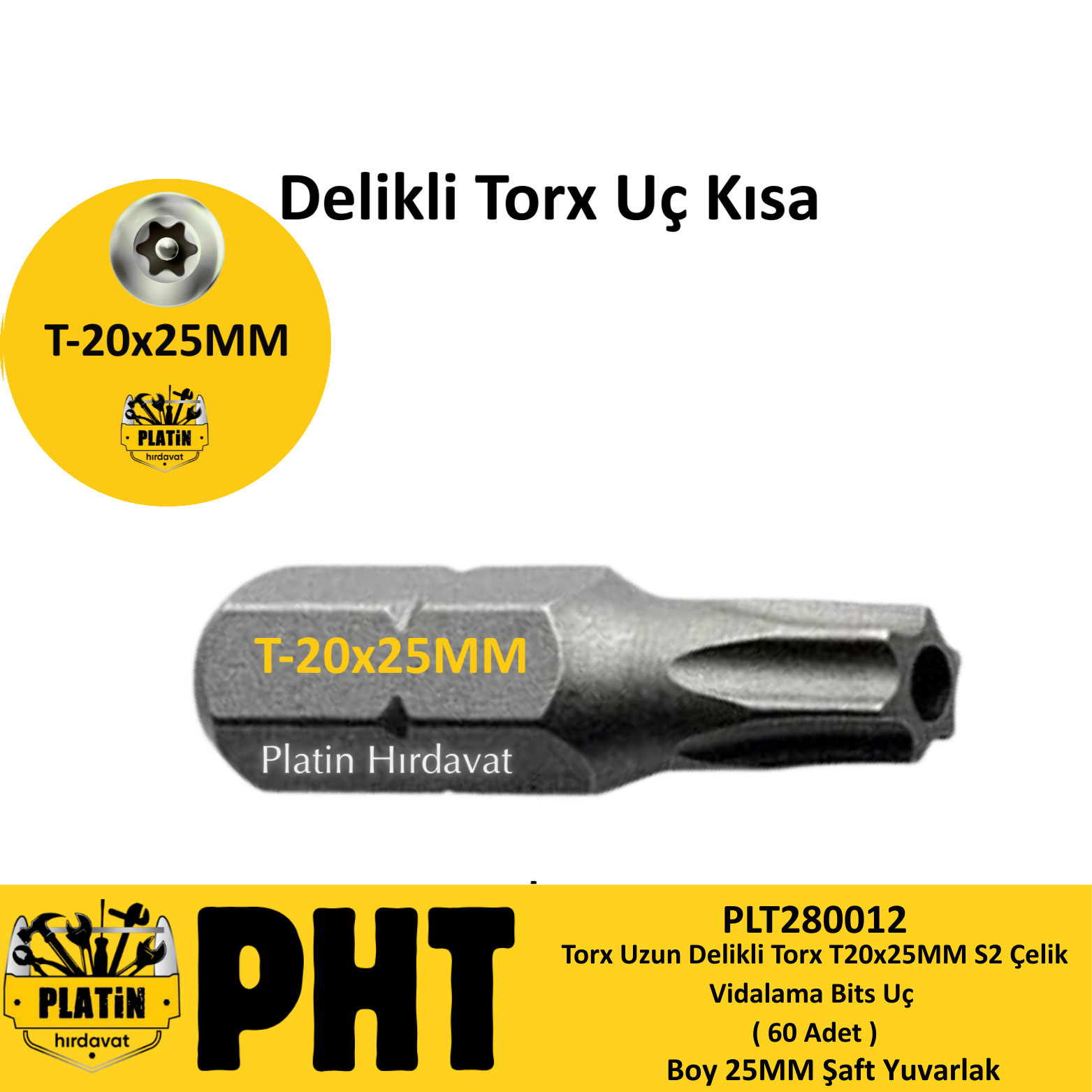PHT Delikli Torx Bits Uç Kısa T20x25mm ( 60 Adet ) PLT280012