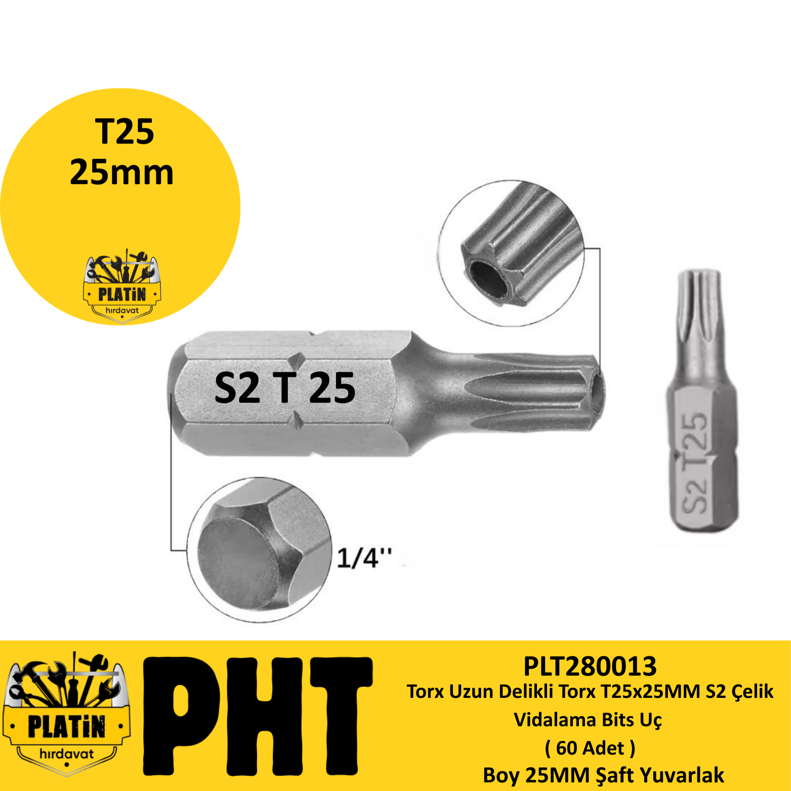 PHT Delikli Torx Bits Uç Kısa T25x25mm ( 60 Adet ) PLT280013