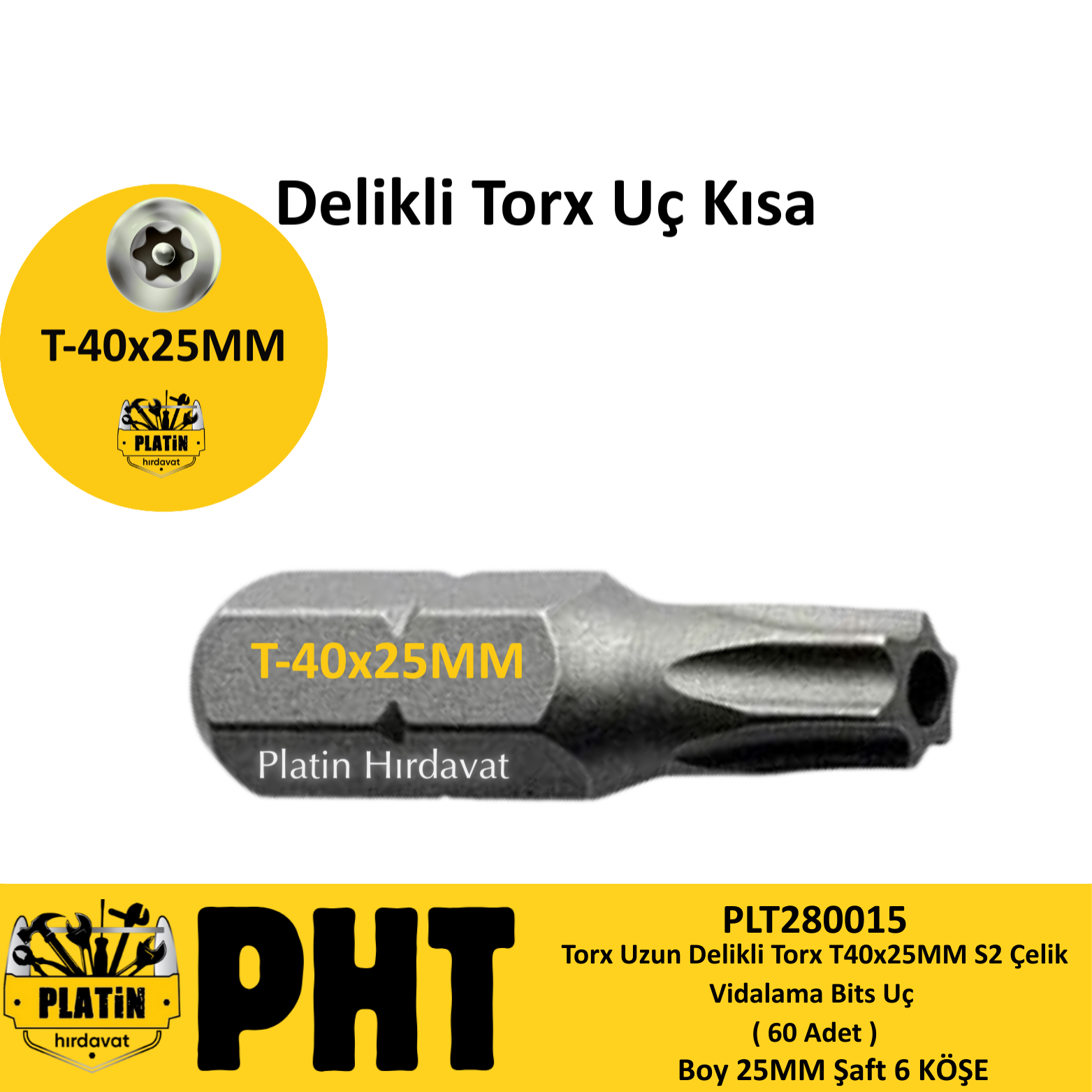 PHT Delikli Torx Bits Uç Kısa T40x25mm ( 60 Adet ) PLT280015