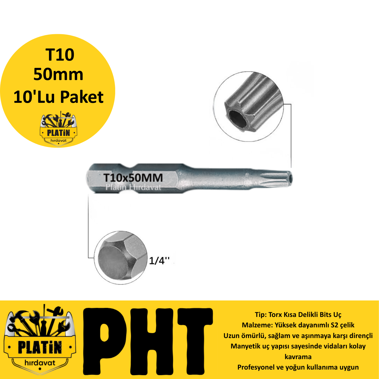 PHT Delikli Torx Bits Uç T10x50mm plt280017 ( 10 Adet )