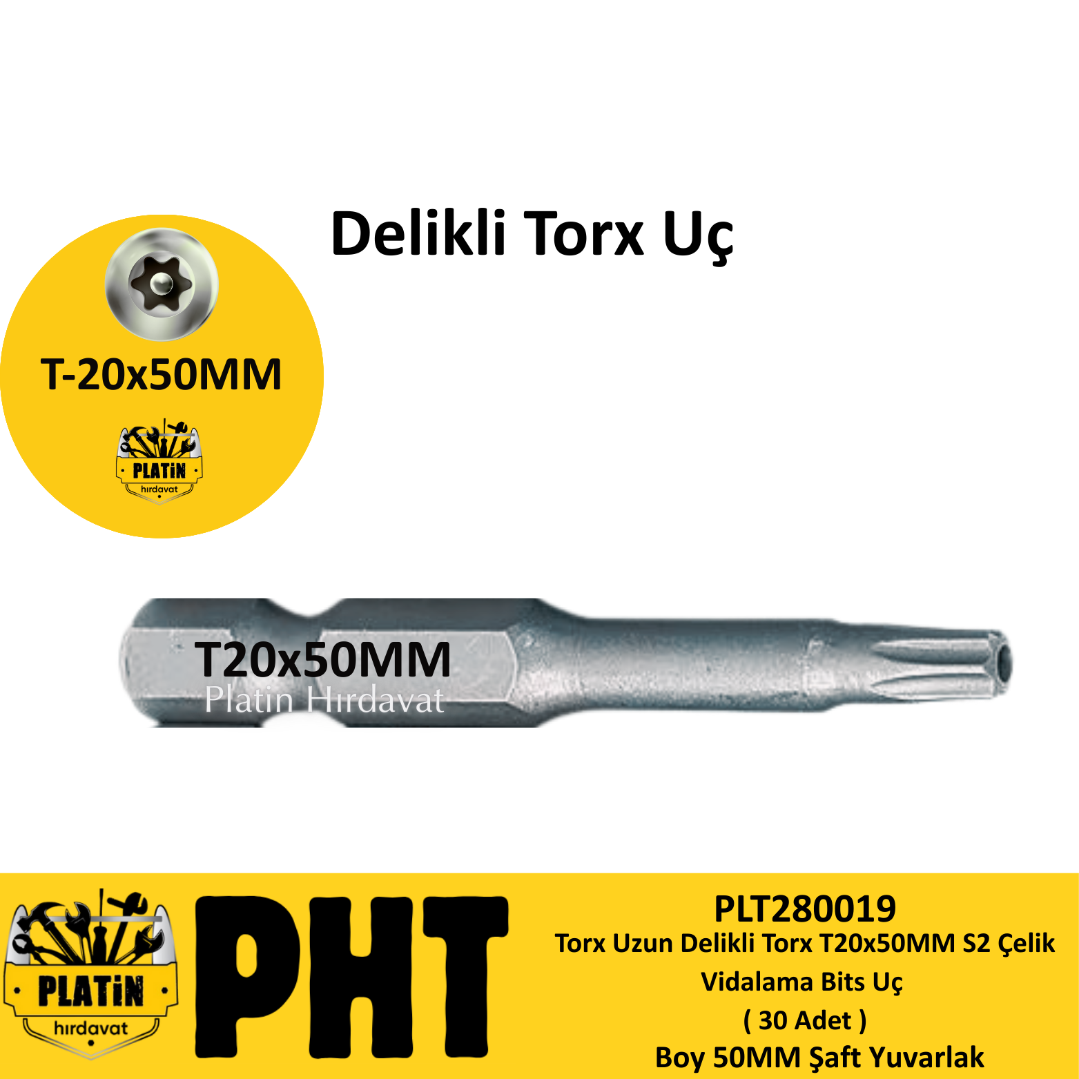 PHT Delikli Torx Bits Uç T20x50mm ( 30 Adet ) PLT280019