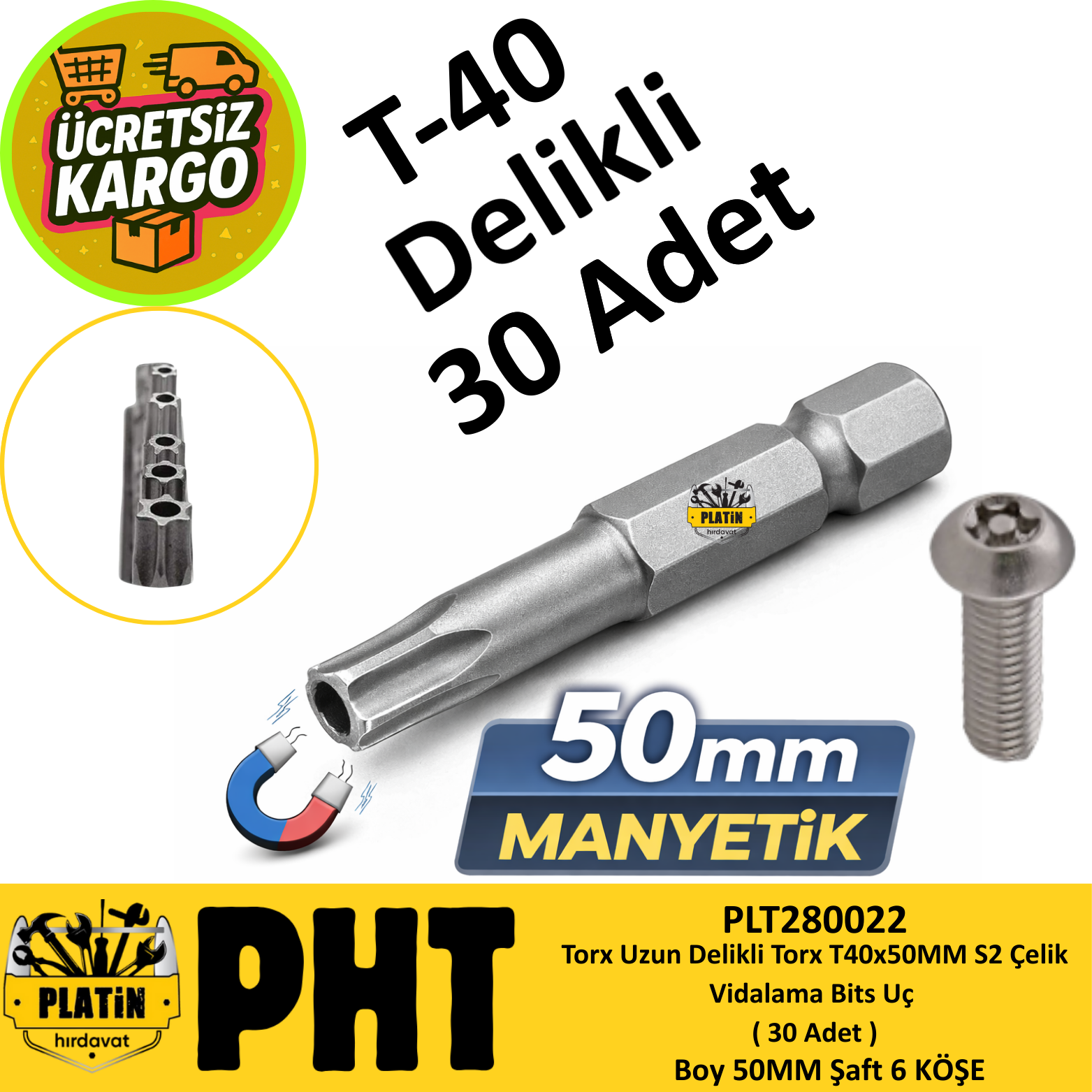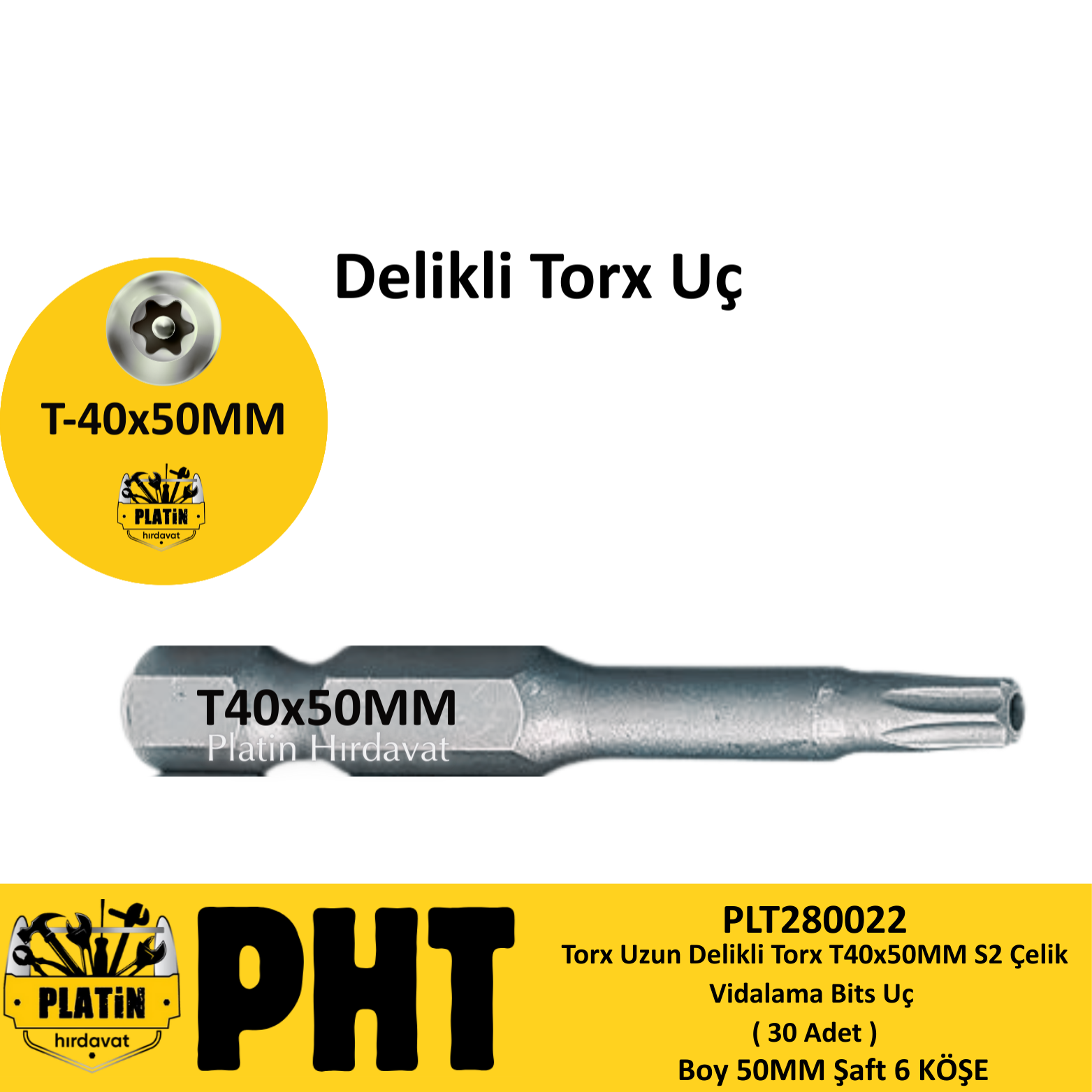 PHT Delikli Torx Bits Uç T40x50mm ( 30 Adet ) PLT280022