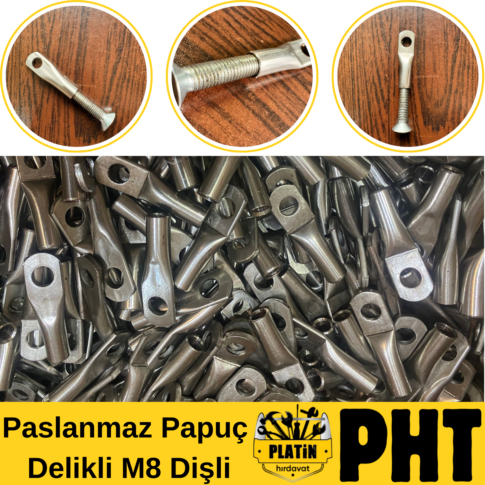 PHT Paslanmaz Papuç Delikli M8 Dişli, Paslanmaz M8 Gözlü Bağlantı Pabucu – Deniz ve Dış Ortam Uyumlu ( 1000 Adet ) PLT28000250