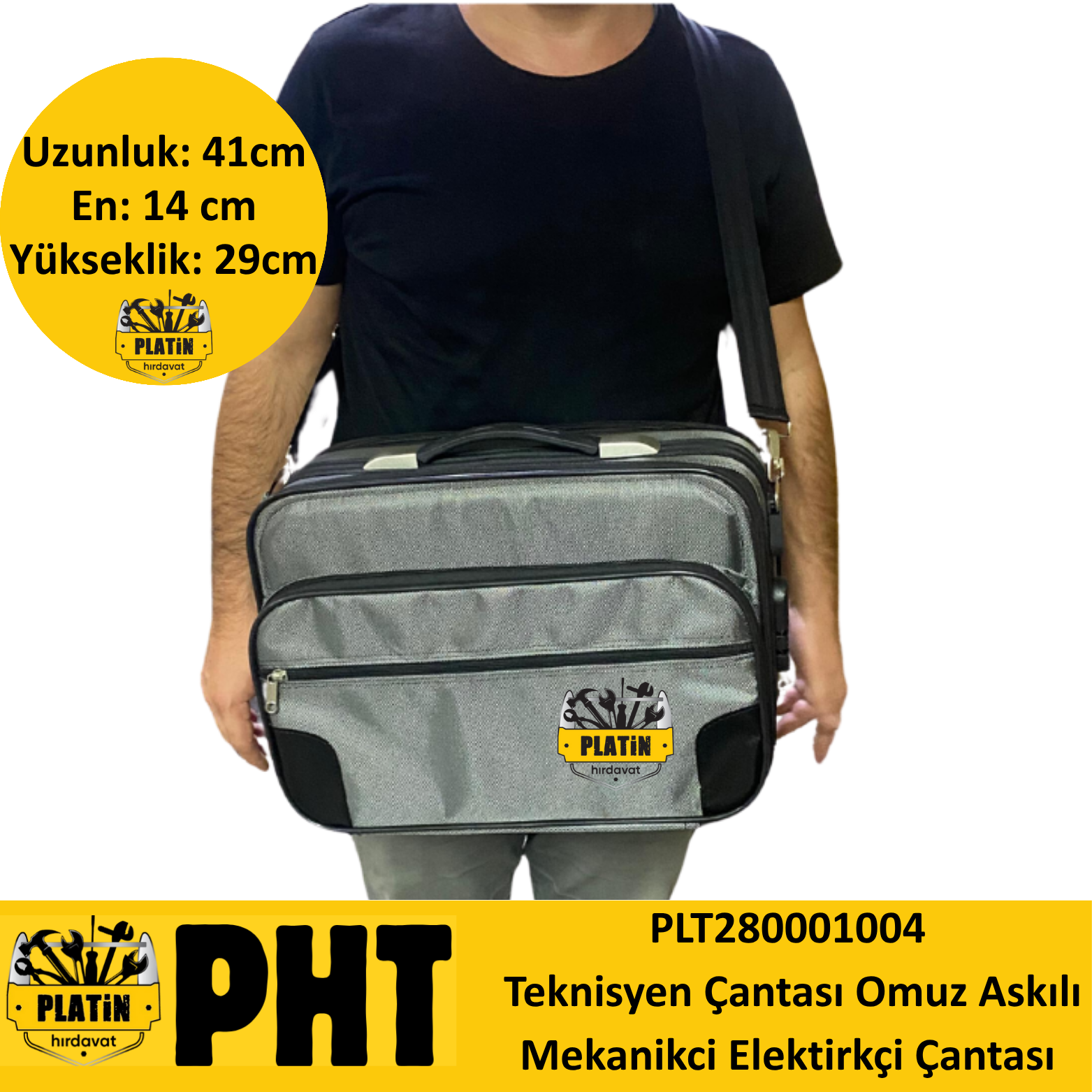 PHT PLATİN HIRDAVAT Gri Teknisyen Çantası Omuz Askılı Mekanikci Elektirkçi Çantası Su Geçirmez plt280001004