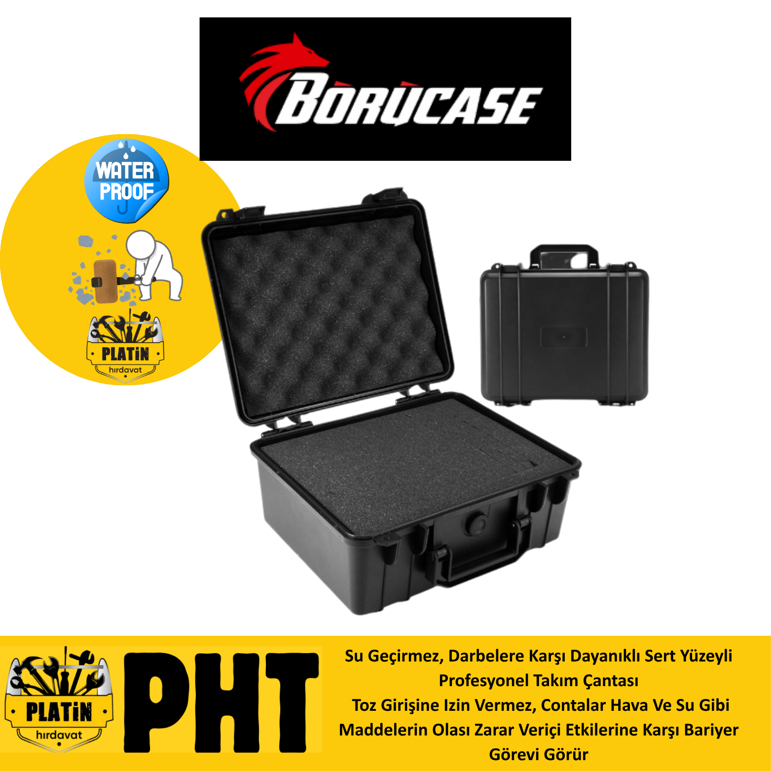 PHT Profesyonel Çanta Su Geçirmez Kırılmaya Dayanıklı Water Poorf Hard Case No:2 plt110 Küçük Boy