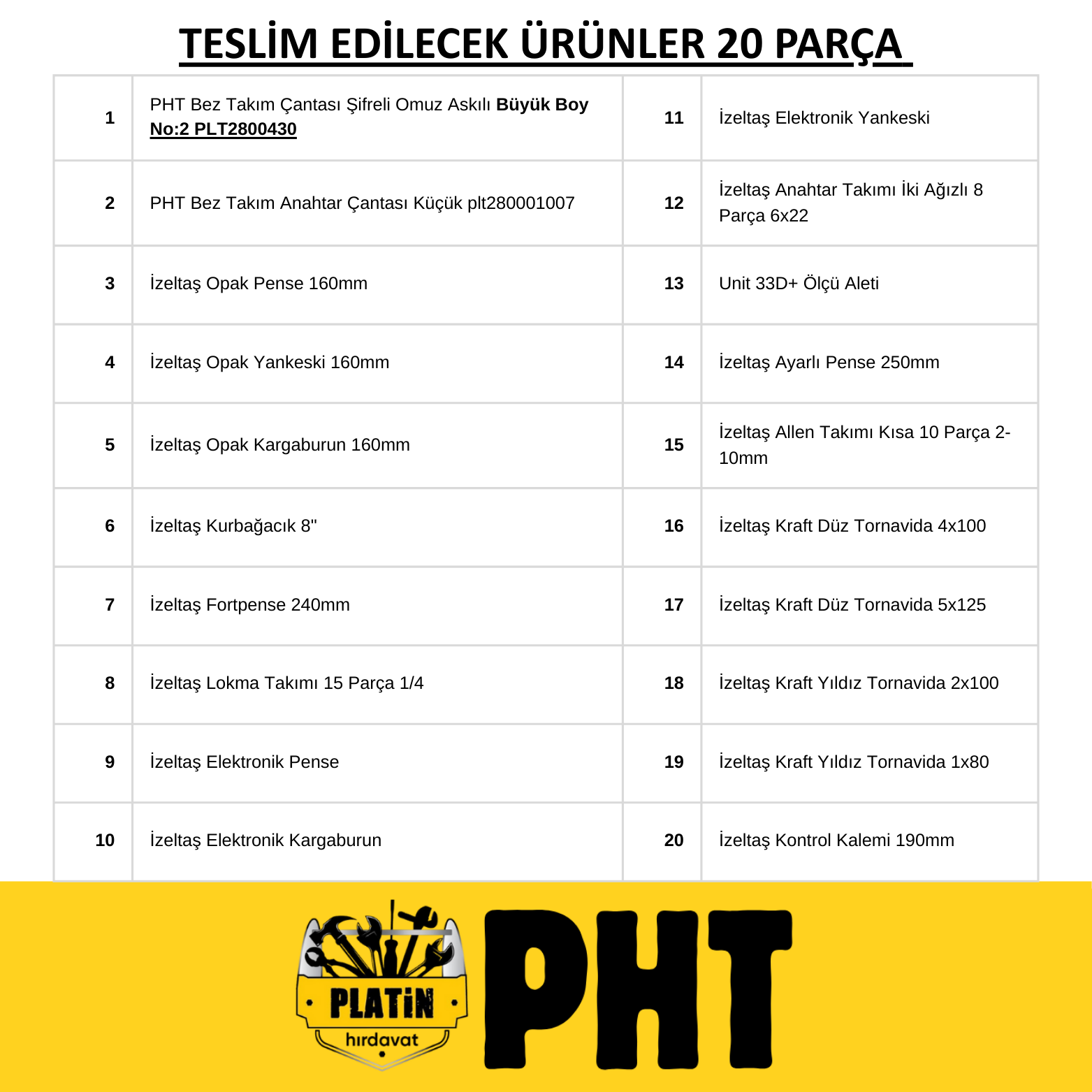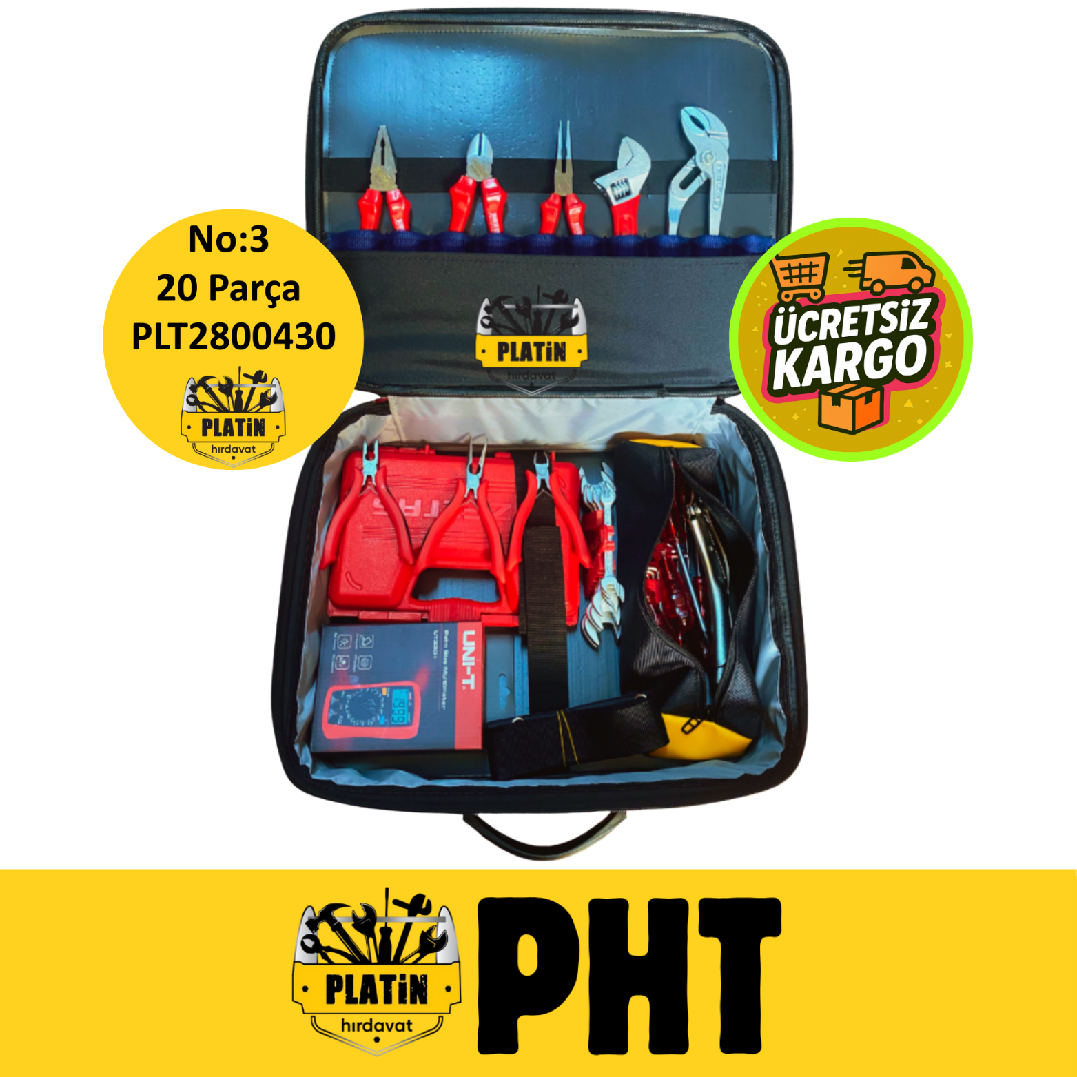 PHT Teknisyen Bez Takım Çantası ( Dolu 20 Parça ) Şifreli Omuz Askılı Büyük Boy No:3 PLT2800430