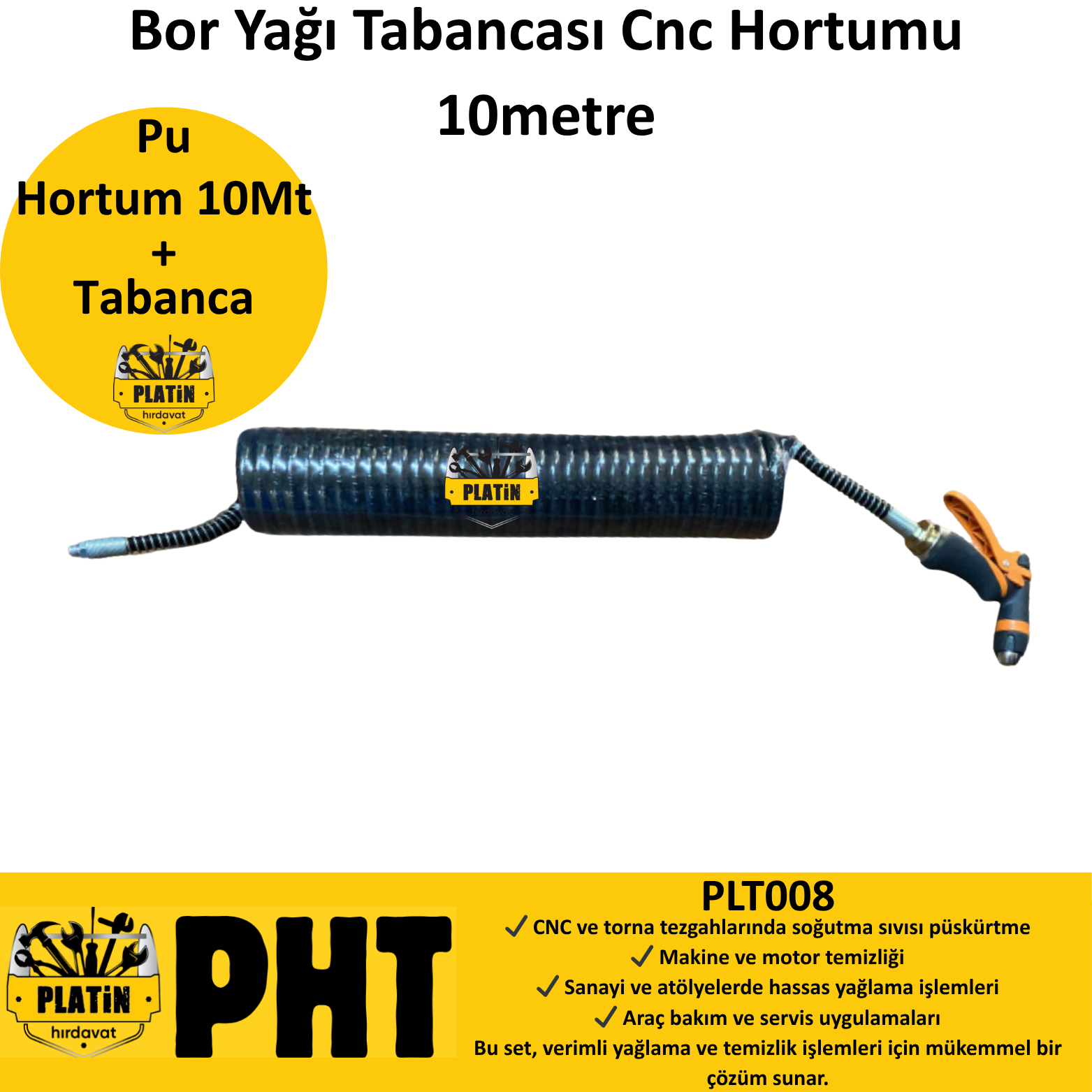PHT Bor Yağı Tabancası Cnc Hortumu 8*12MM 10metre plt008
