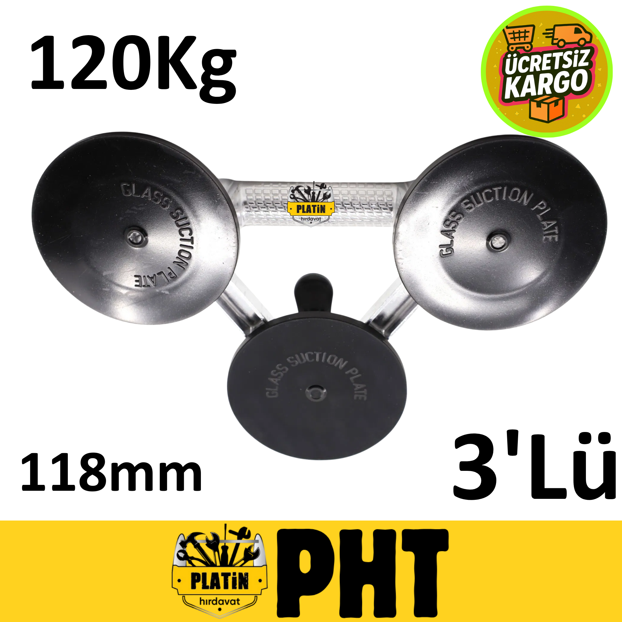 Proft Alüminyum Cam Vantuzu 3'lü ( 10 Adet ) 120Kg 118mm PLT2800685