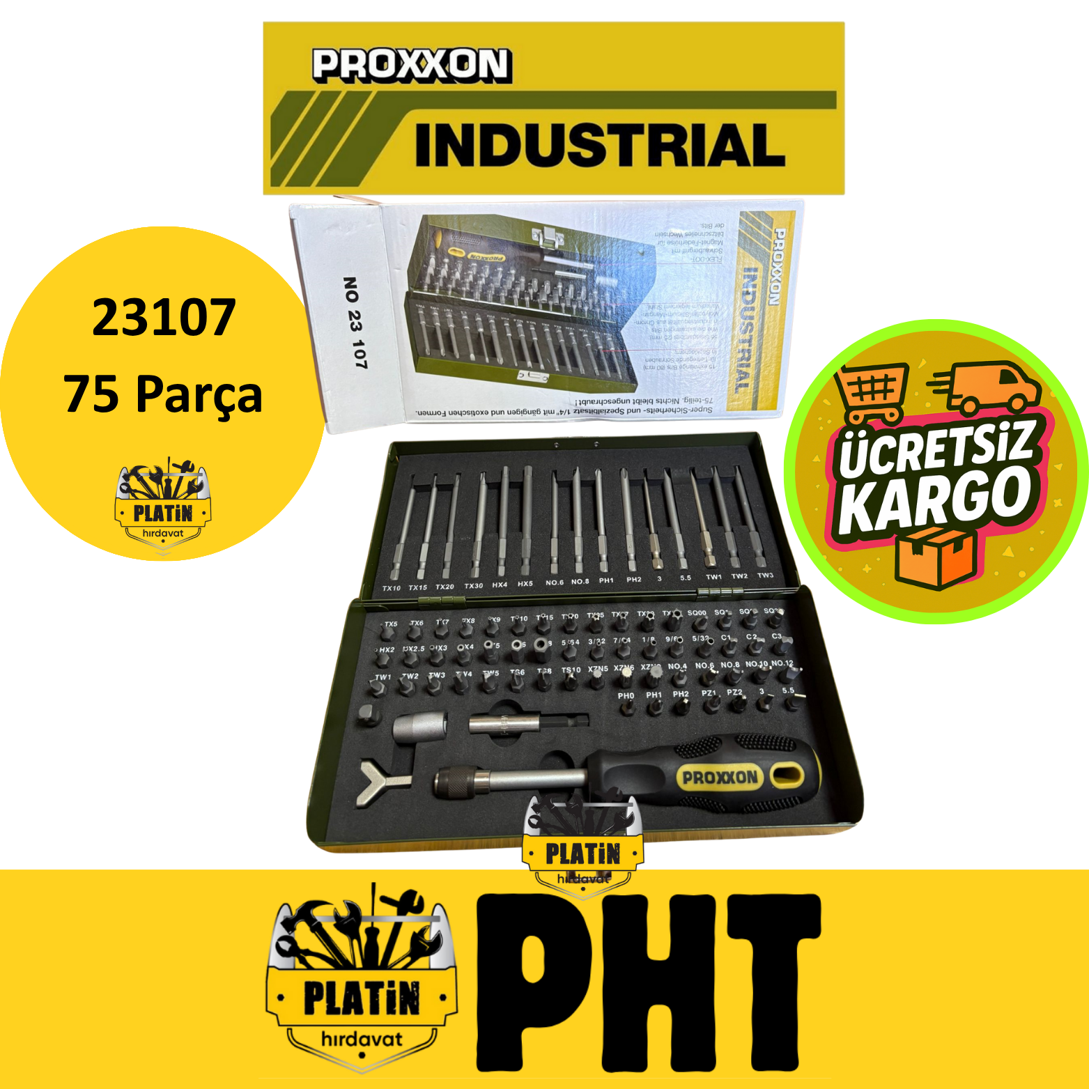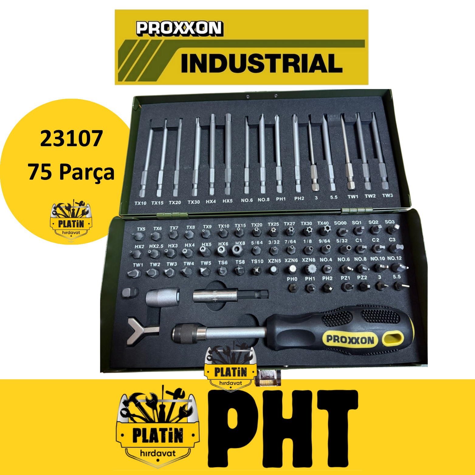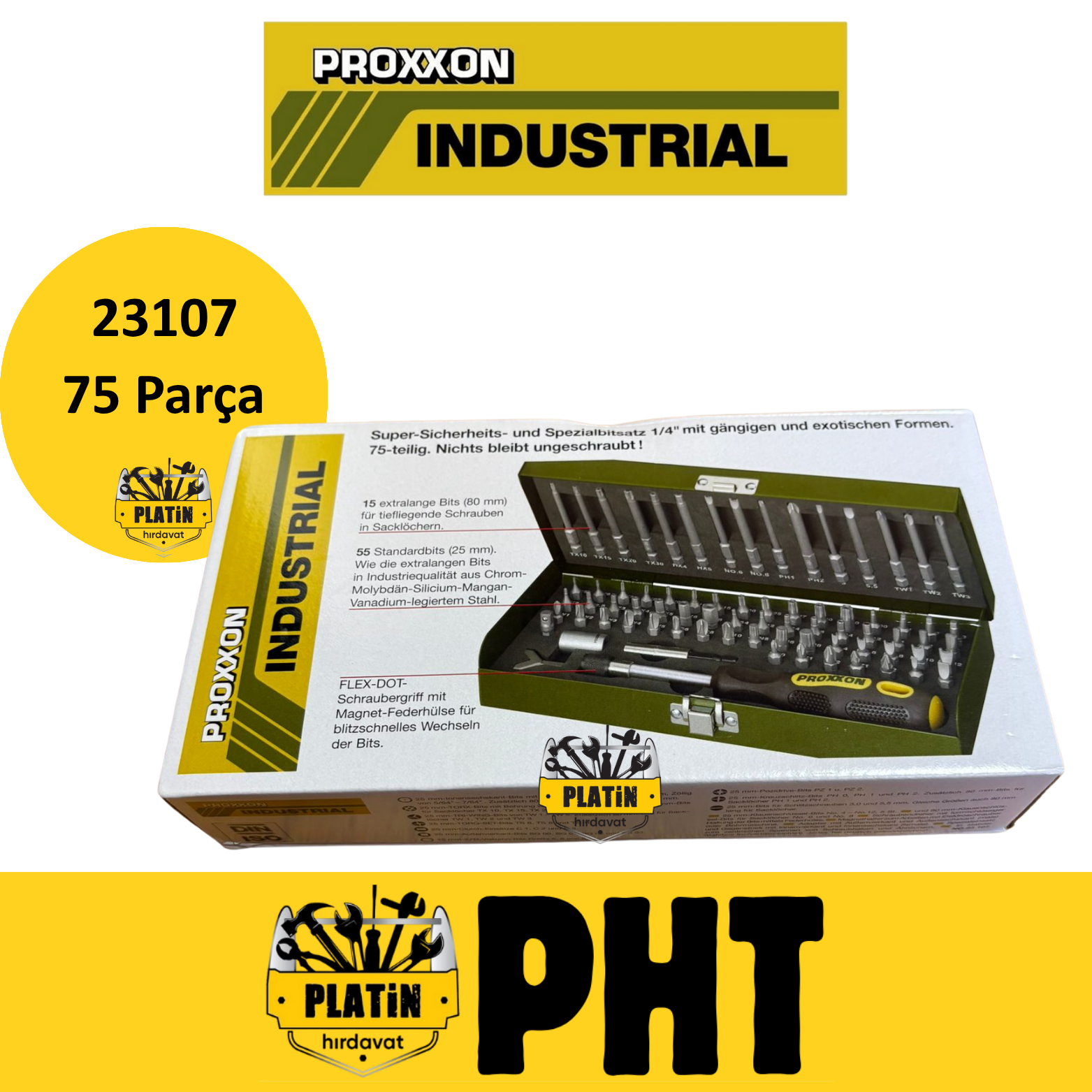 Proxxon 23107 1/4 "tahrik İçin Emniyet Ve Özel Uç Seti. 75 Parça