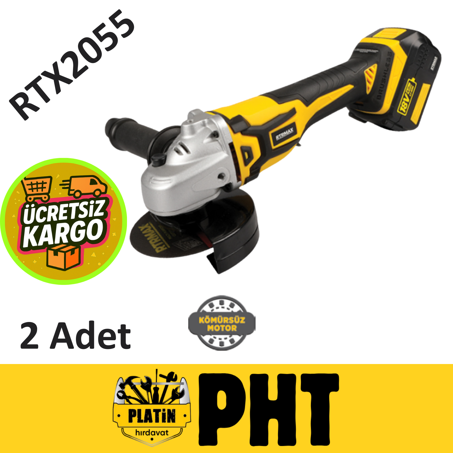 Rtrmax RTX2055 Avuç Taşlama Makinesi 115mm 18V Li-ion Çift Akü 4 Ah Kömürsüz Motor ( 2 Adet )