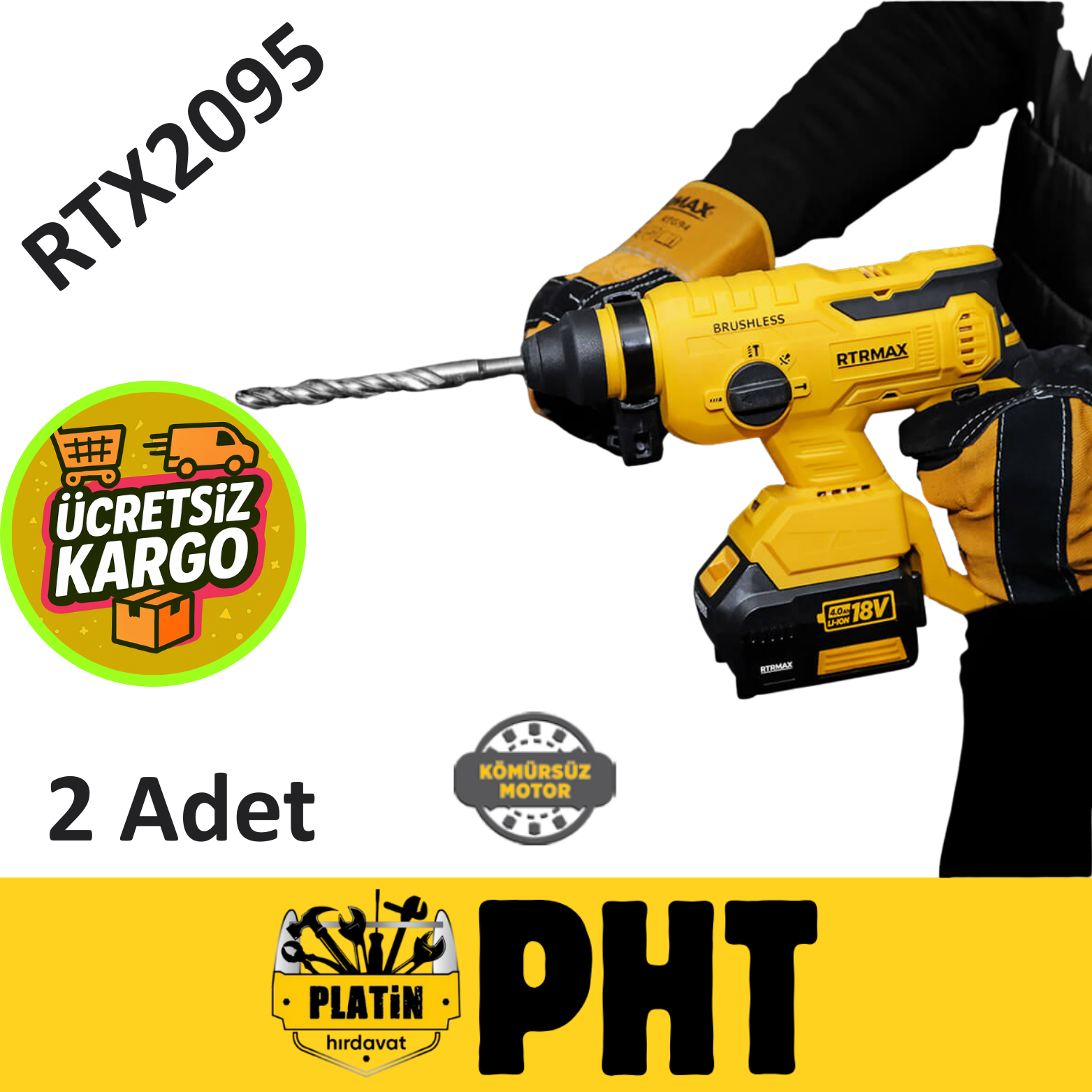 Rtrmax RTX2095 Kırıcı Delici Elektropnömatik 18V Li-ion Çift Akü 4 Ah Kömürsüz Motor ( 2 Adet )