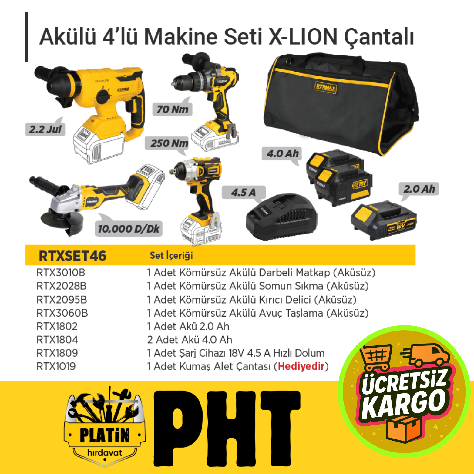 Rtrmax RTXSET46 Akülü 4’lü Makine Seti X-LION Çantalı