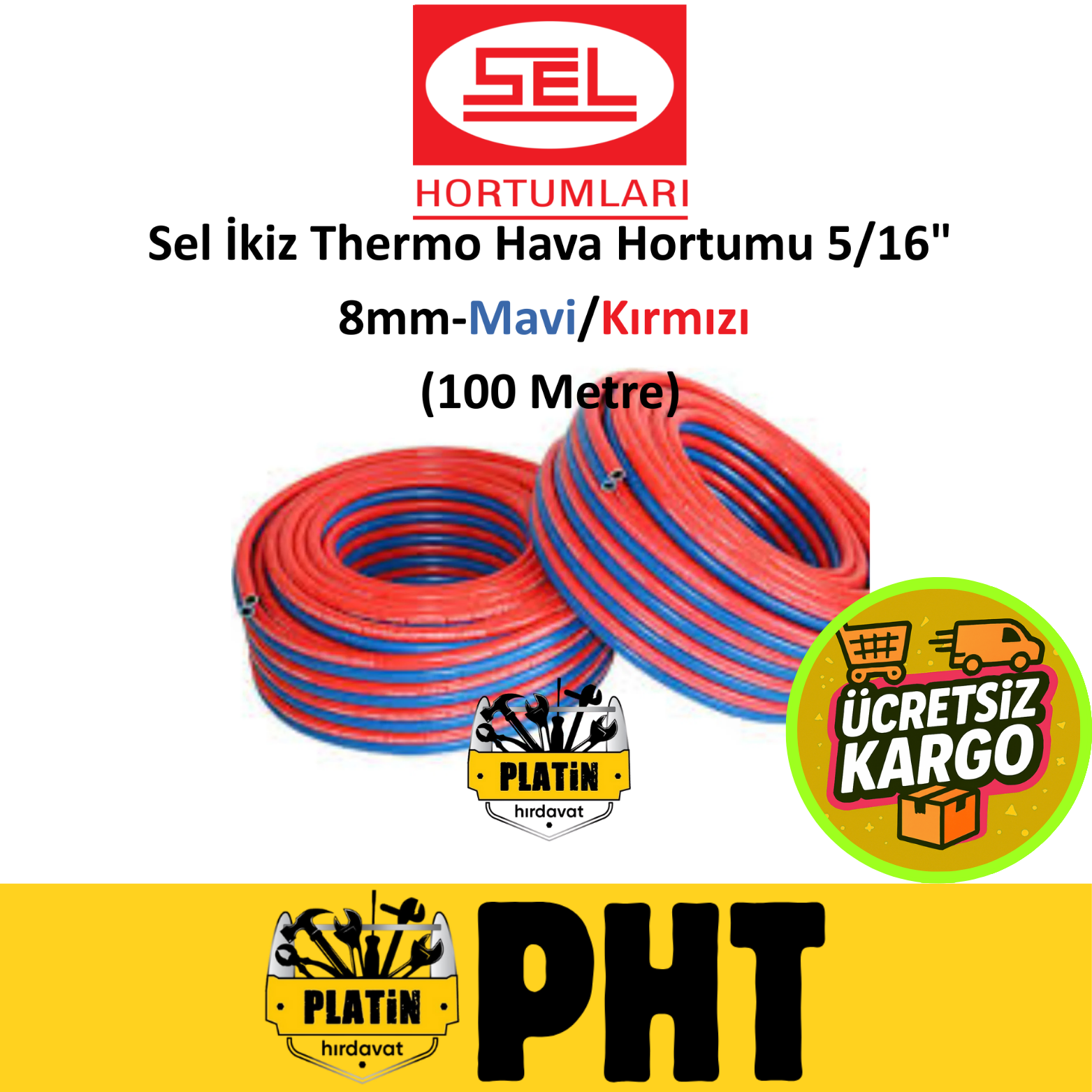 Sel İkiz Thermo Hava Hortumu 5/16" 8mm Mavi/Kırmızı (100 Metre)