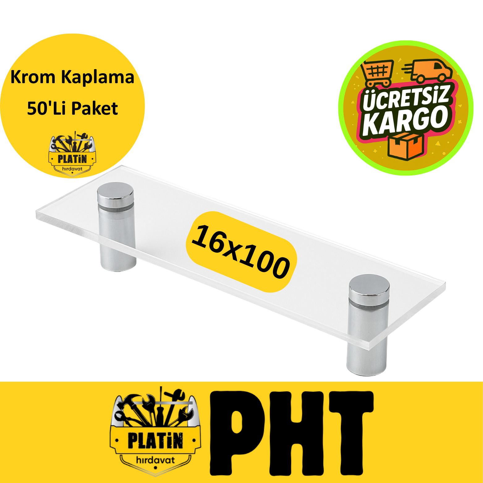 PHT Tabela Vidası / Krom Ayak Pleksi Tutucu / Yükseltme Aparatı 16x100 Krom