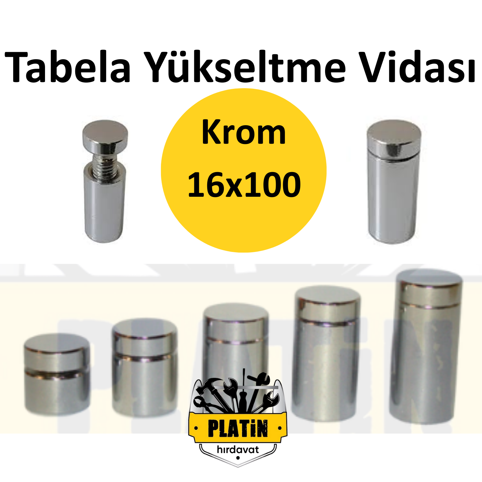 Tabela Yükseltme Vidası 16x100 Plexi Tutucu Krom