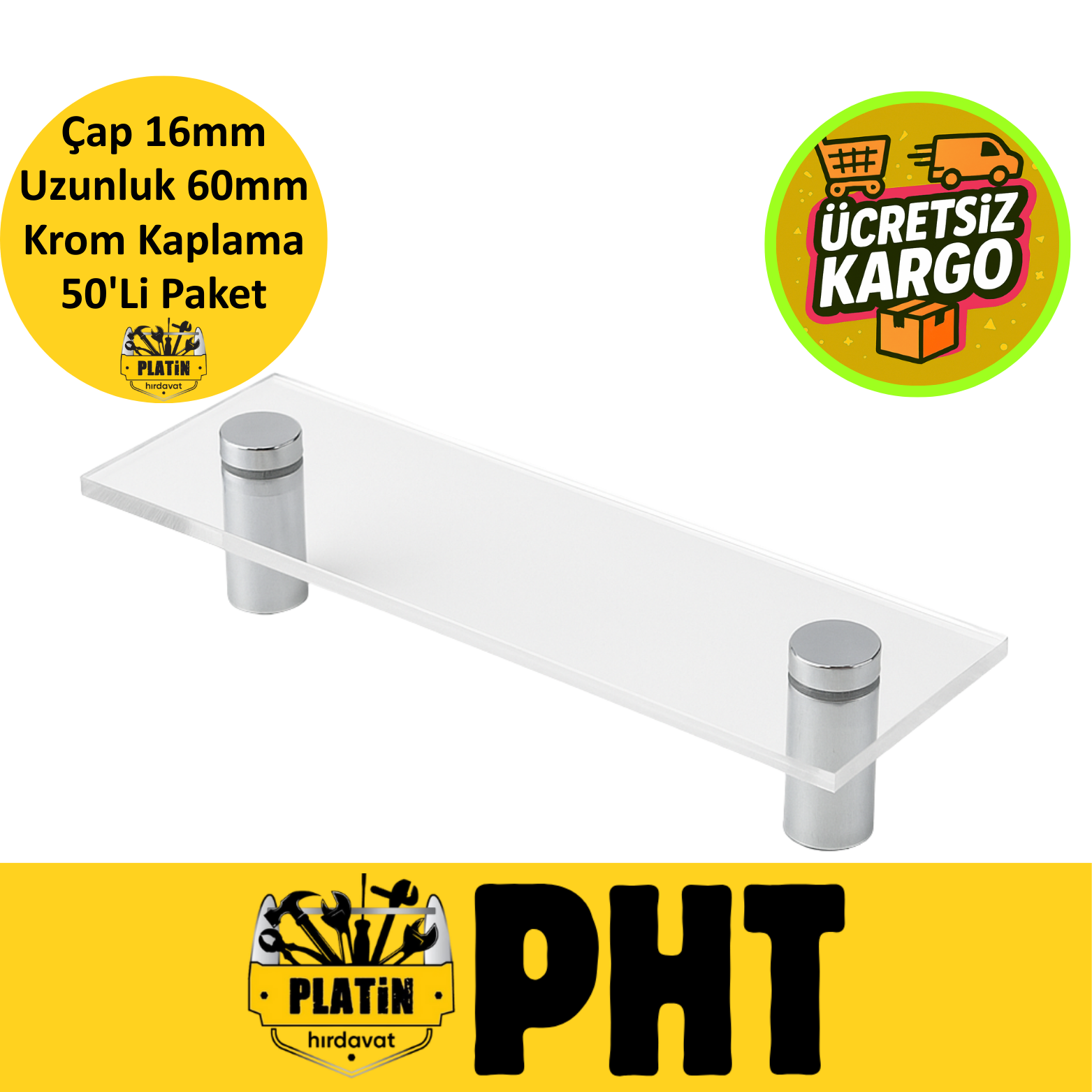 PHT Tabela Vidası / Krom Ayak Pleksi Tutucu / Yükseltme Aparatı 16x60 Krom