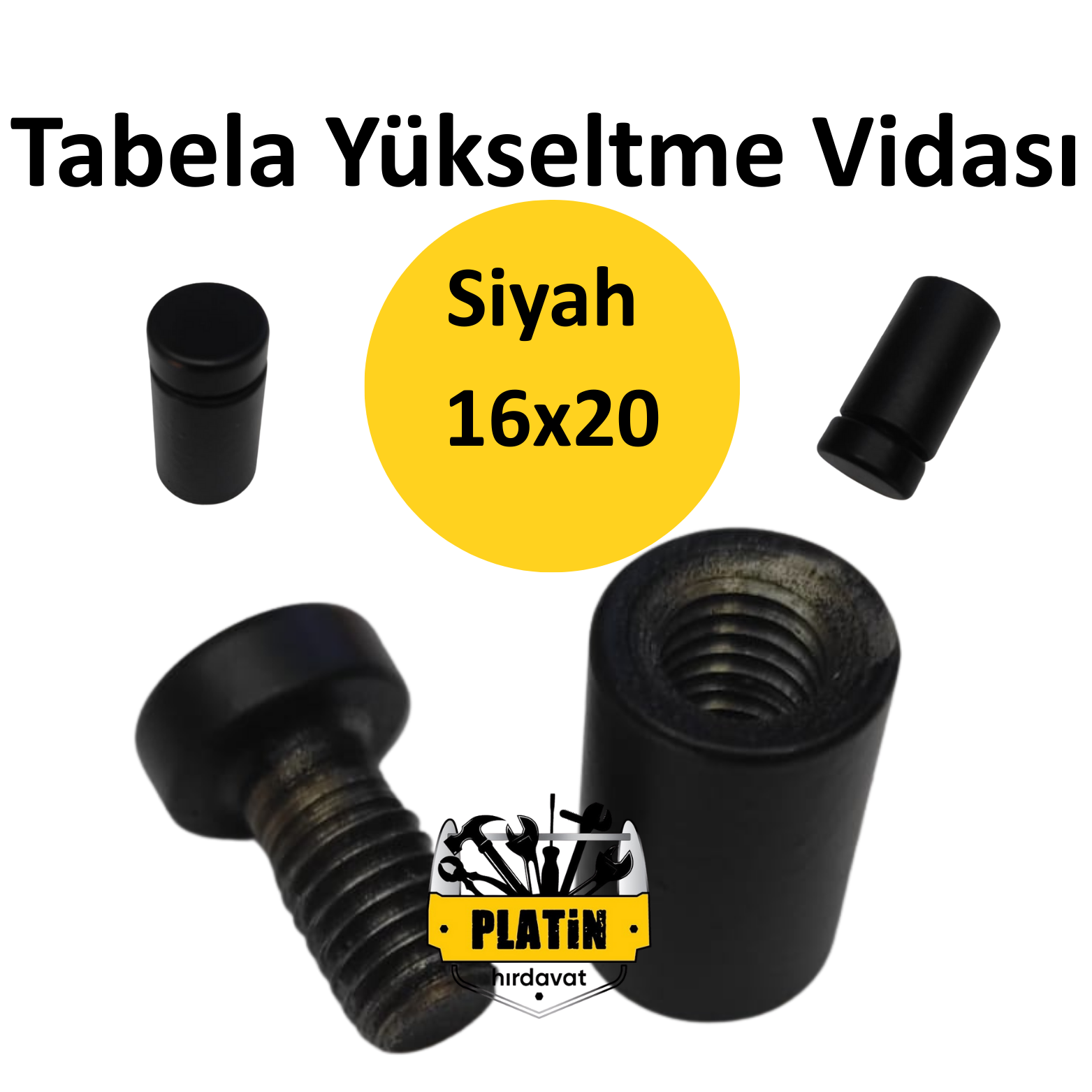Tabela Yükseltme Vidası 16x20 Plexi Tutucu Siyah Renk