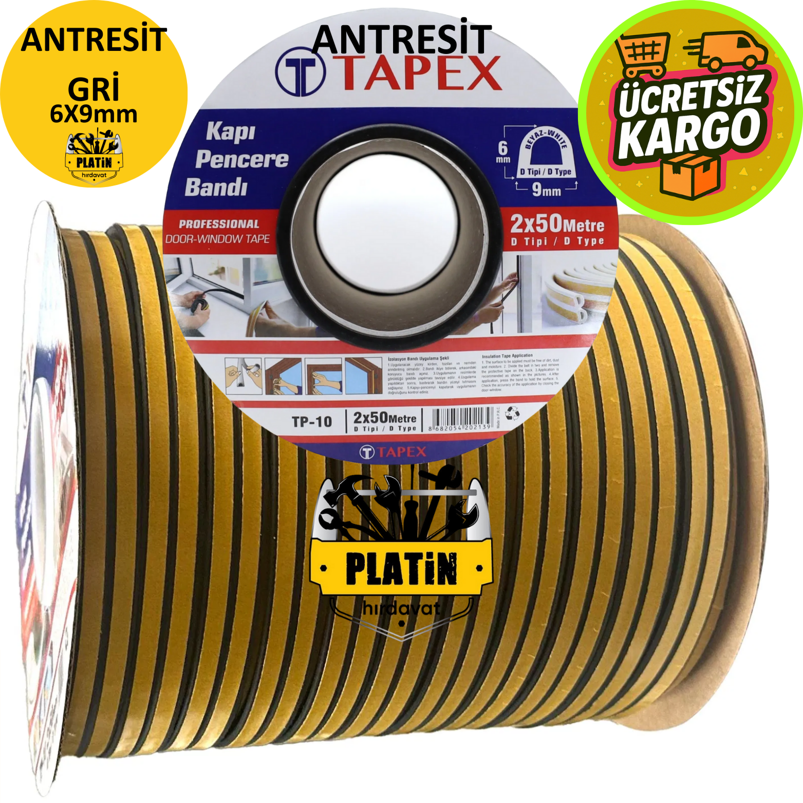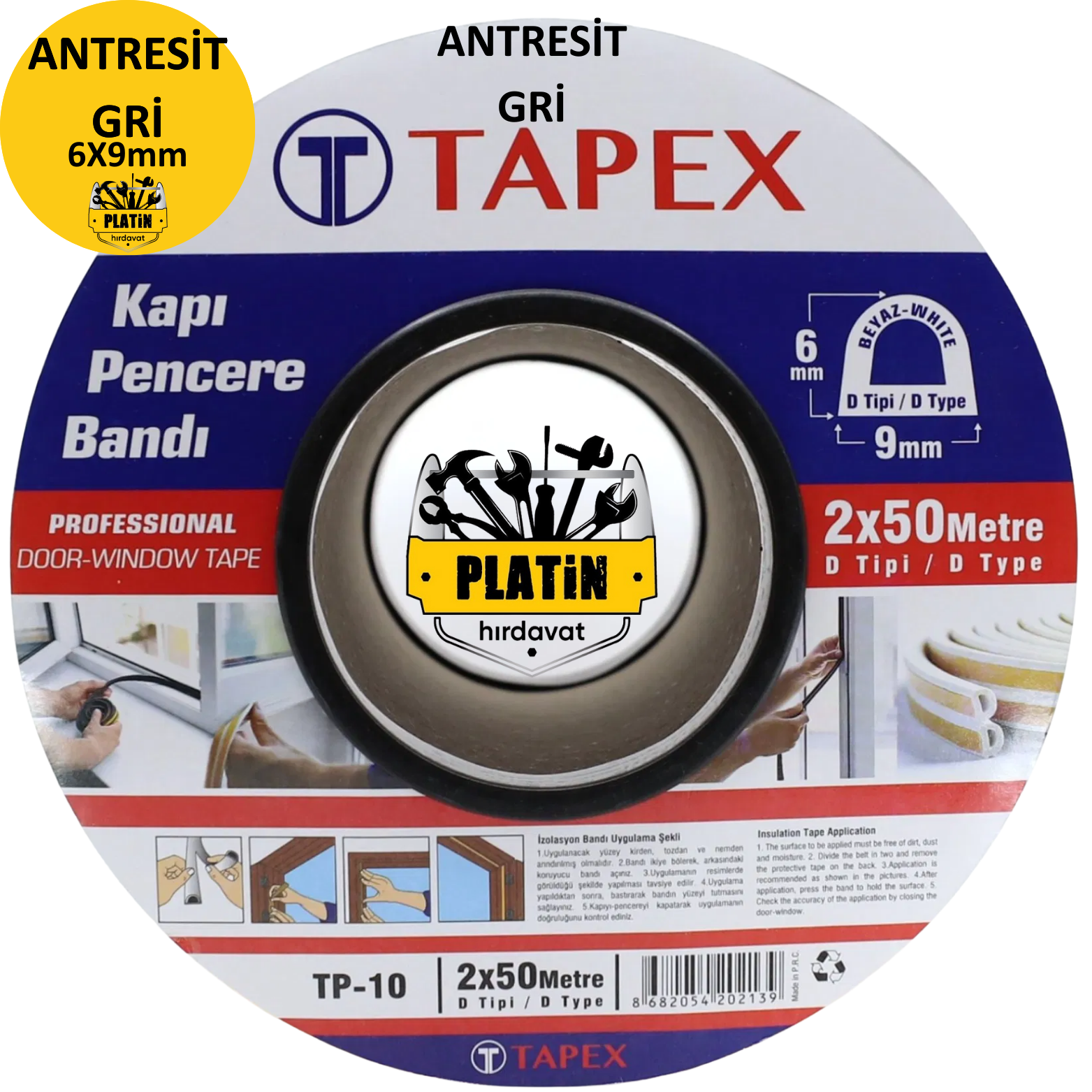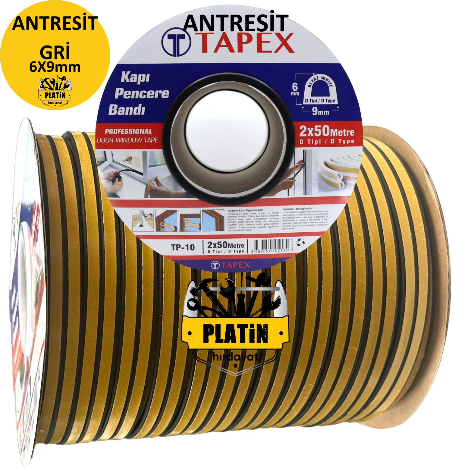 Tapex Kapı ve Pencere İzolasyon Bandı - Fitili 50x2 = 100 Metre Antresit Gri