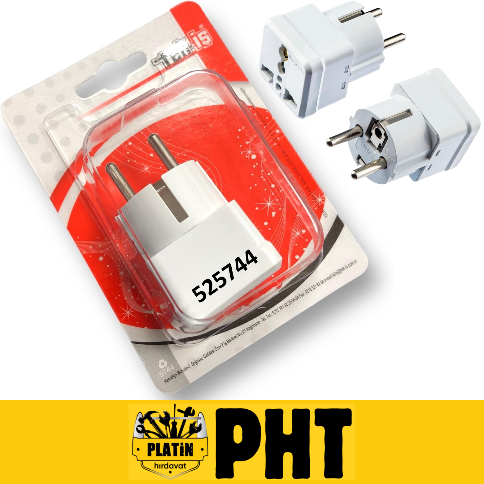 Tek-İş 525744 Seyahat Adaptörü, Türk Erkek Fişli, Universal, Beyaz