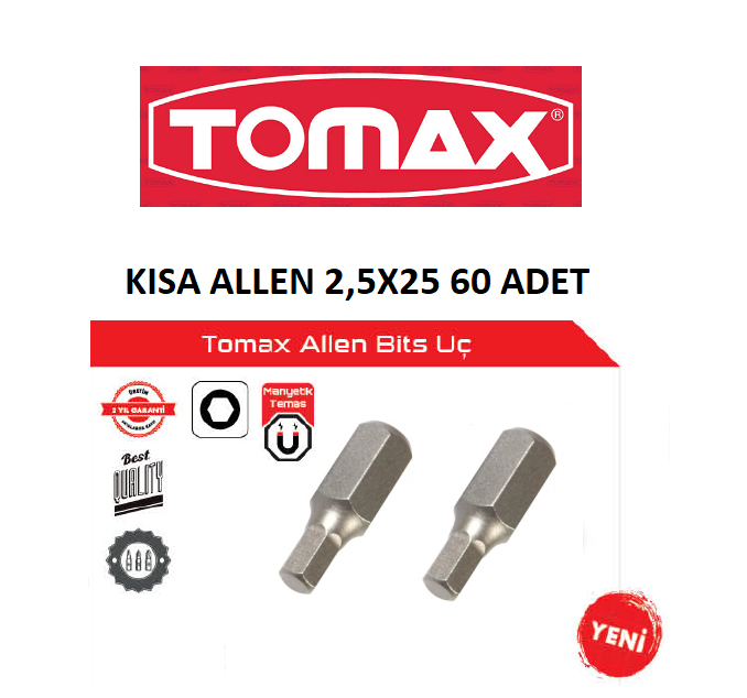 Tomax Kısa Allen Bits Uç 2,5X25 - ( 600 Adet ) 006040025