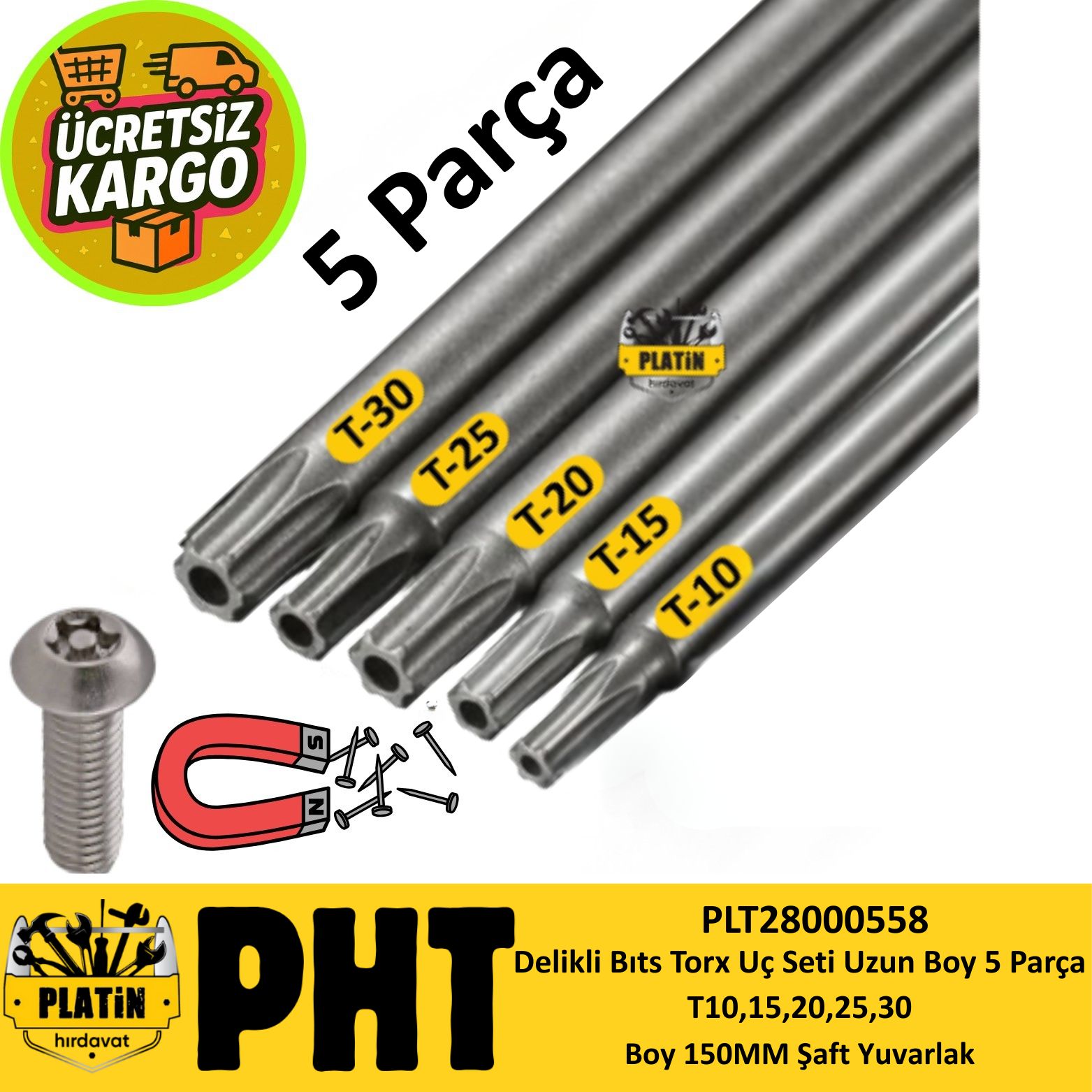 PHT Delikli Bıts Torx Uç Seti Uzun Boy 150MM ( 5 Parça ) T10,15,20,25,30 PLT28000558