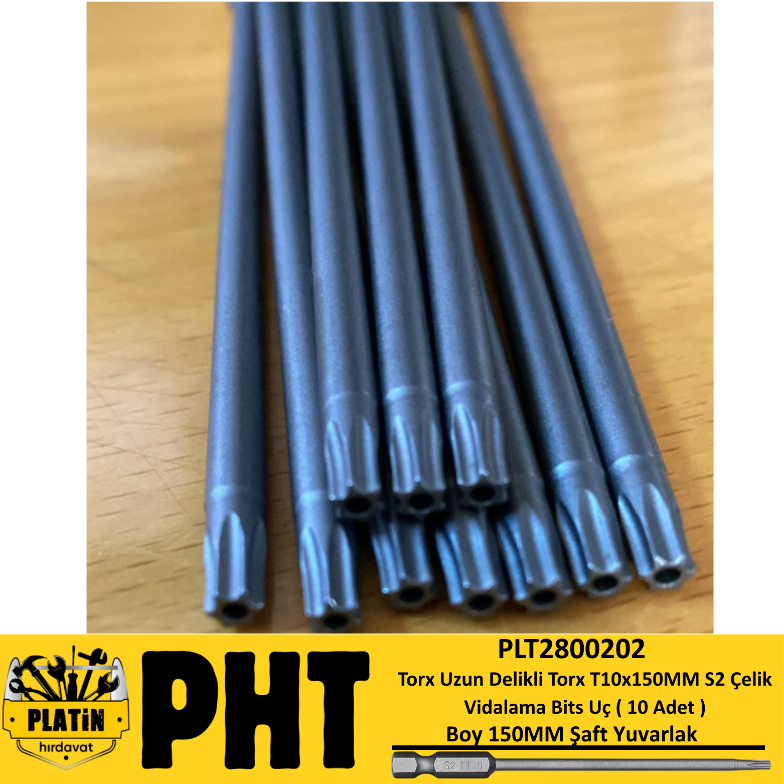 PHT Torx Uzun Delikli Torx T10x150MM S2 Çelik Vidalama Bits Uç ( 10 Adet ) PLT2800202