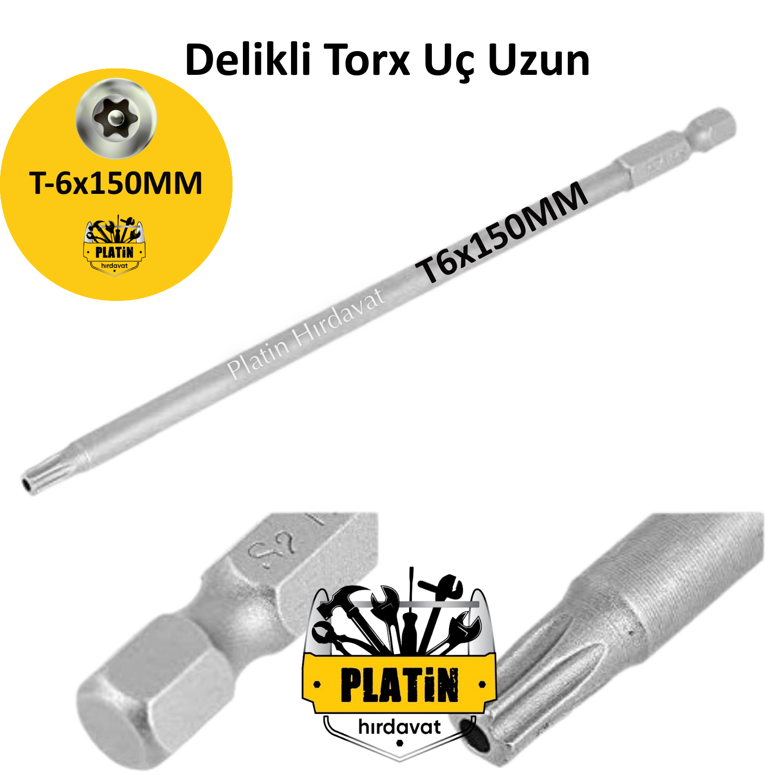 Delikli Torx Uç s2 Çeliği Uzun Boy T6*150mm,Manyetik,