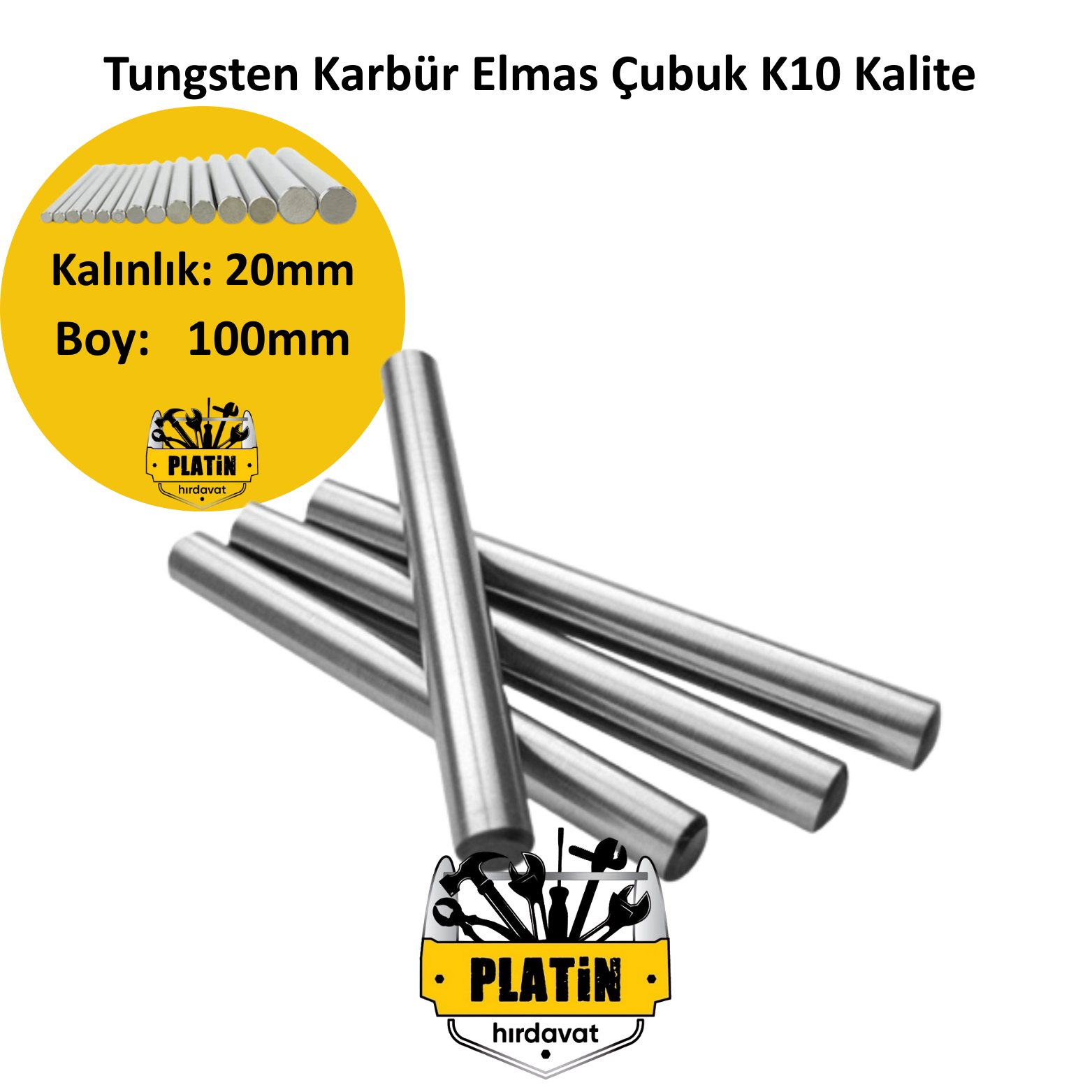 Maraton Hole Tungsten Karbür Elmas Çubuk K10 Kalite 20mm x 100mm