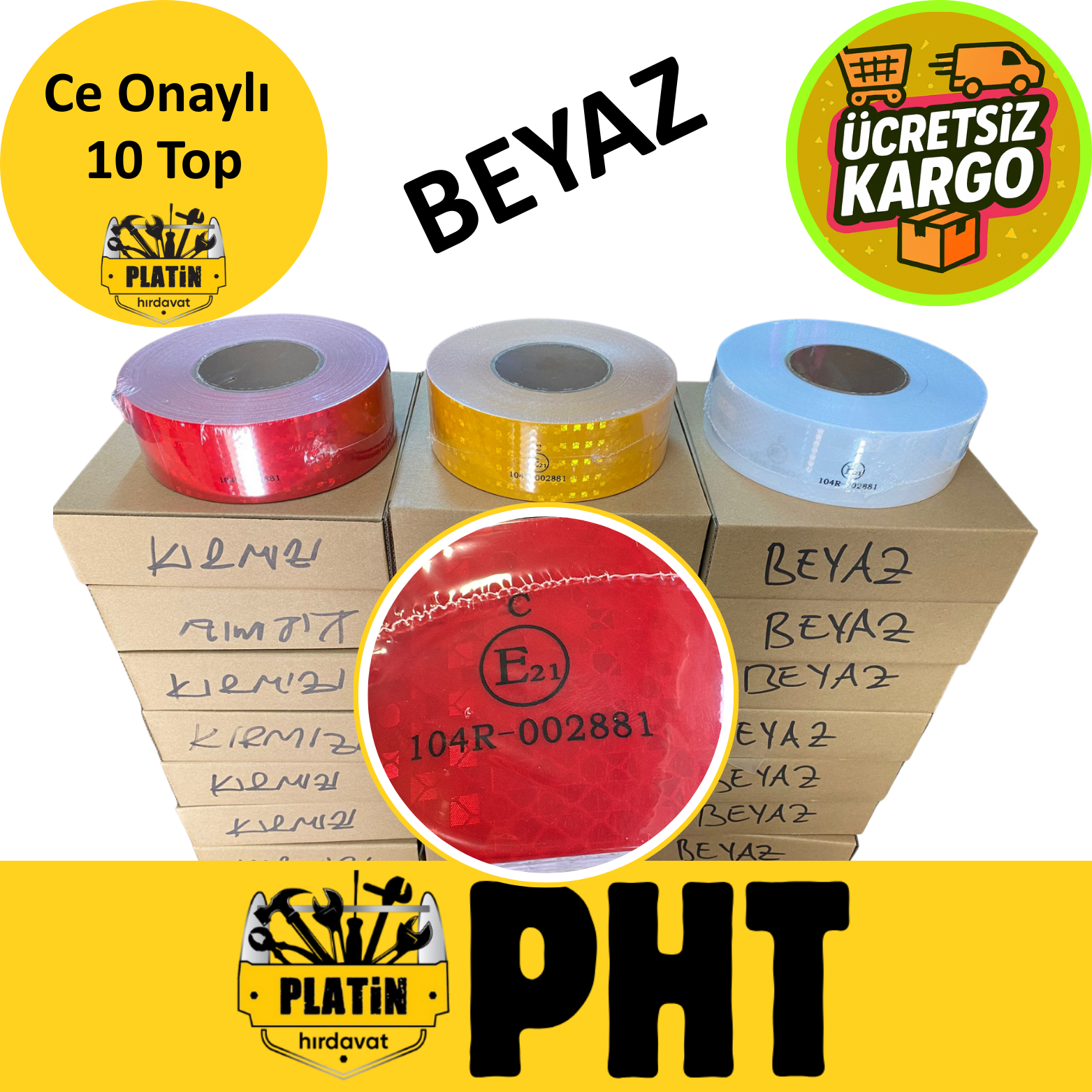 Tüvtürk Onaylı Reflektörlü Fosforlu Şerit Bant Reflek Ikaz Bandı Beyaz 50mm x 50 Metre ( 10 Top ) PLTRB50