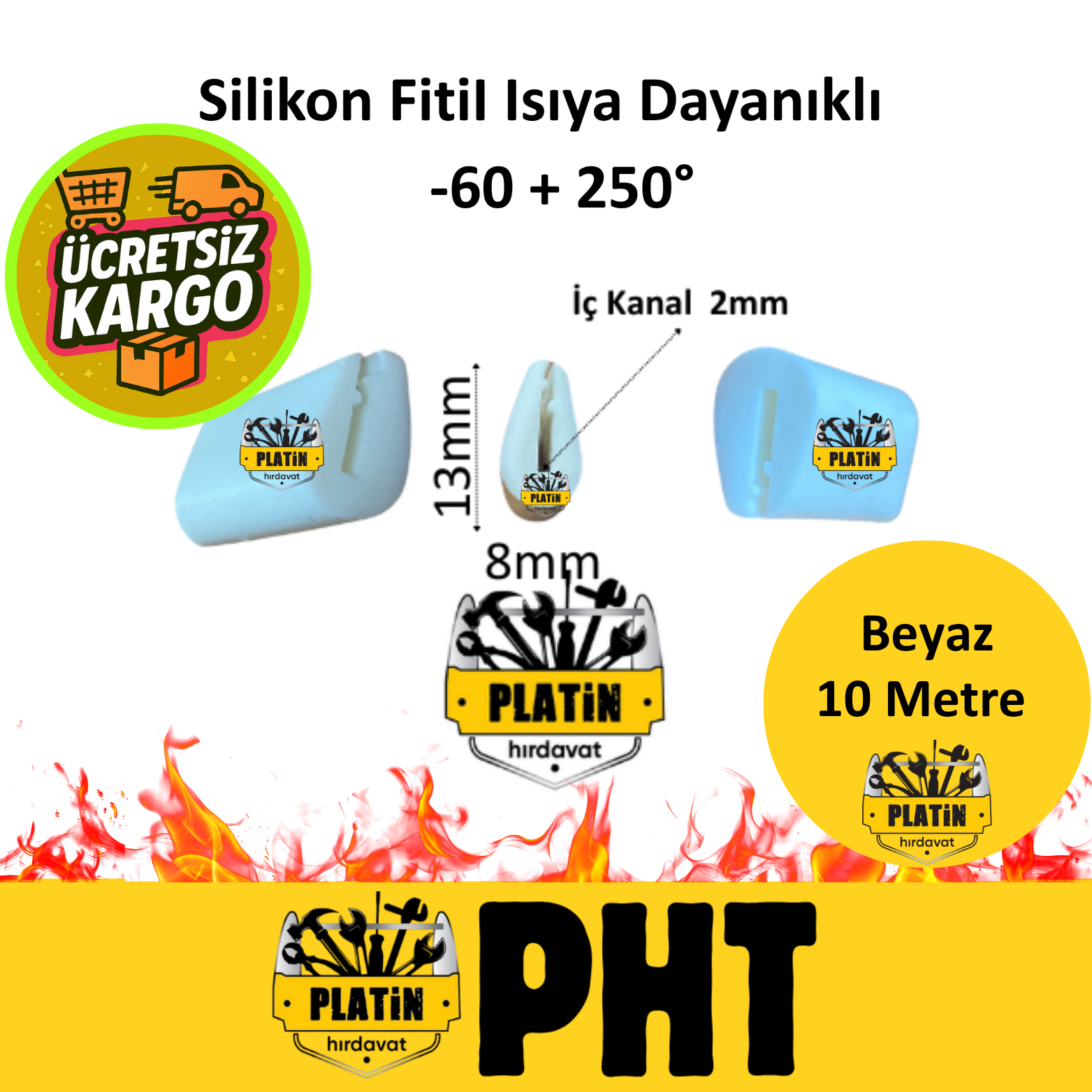 PHT Silikon U Fitil Beyaz Genişlik 8mm Yükseklik 13mm İç 2mm ( 10 Metre ) plt28000245