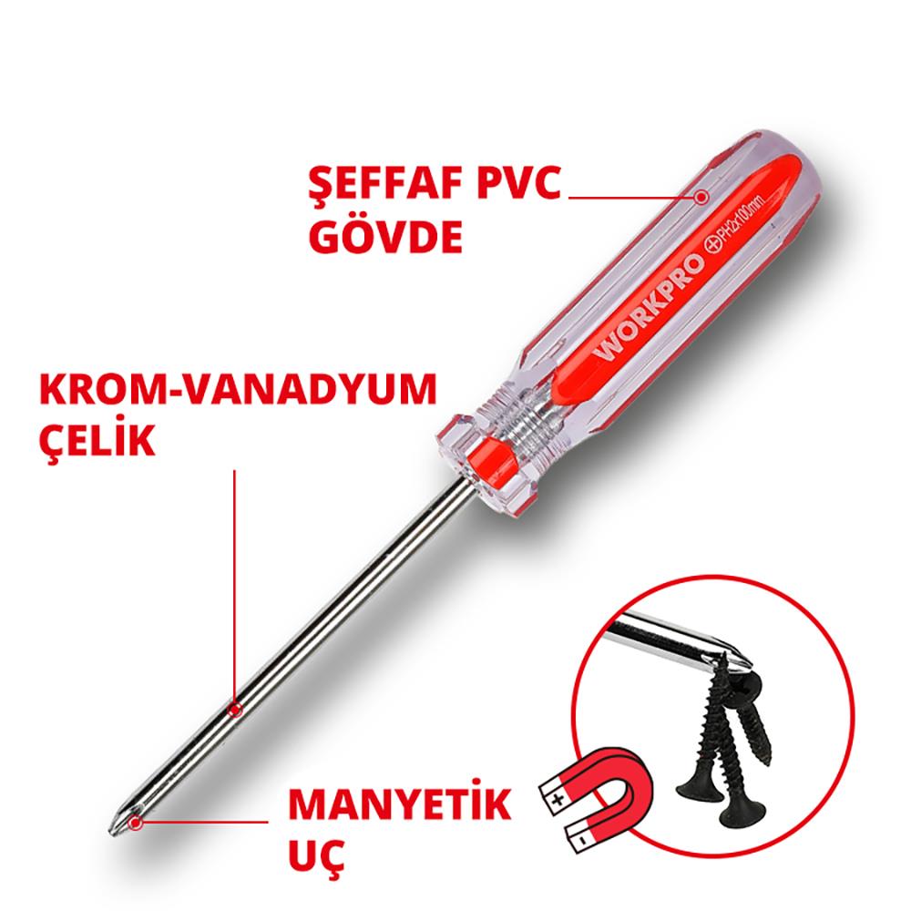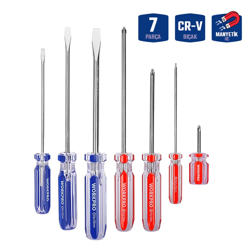 WORKPRO WP200533 7 Parça CR-V Manyetik Profesyonel Tornavida Seti