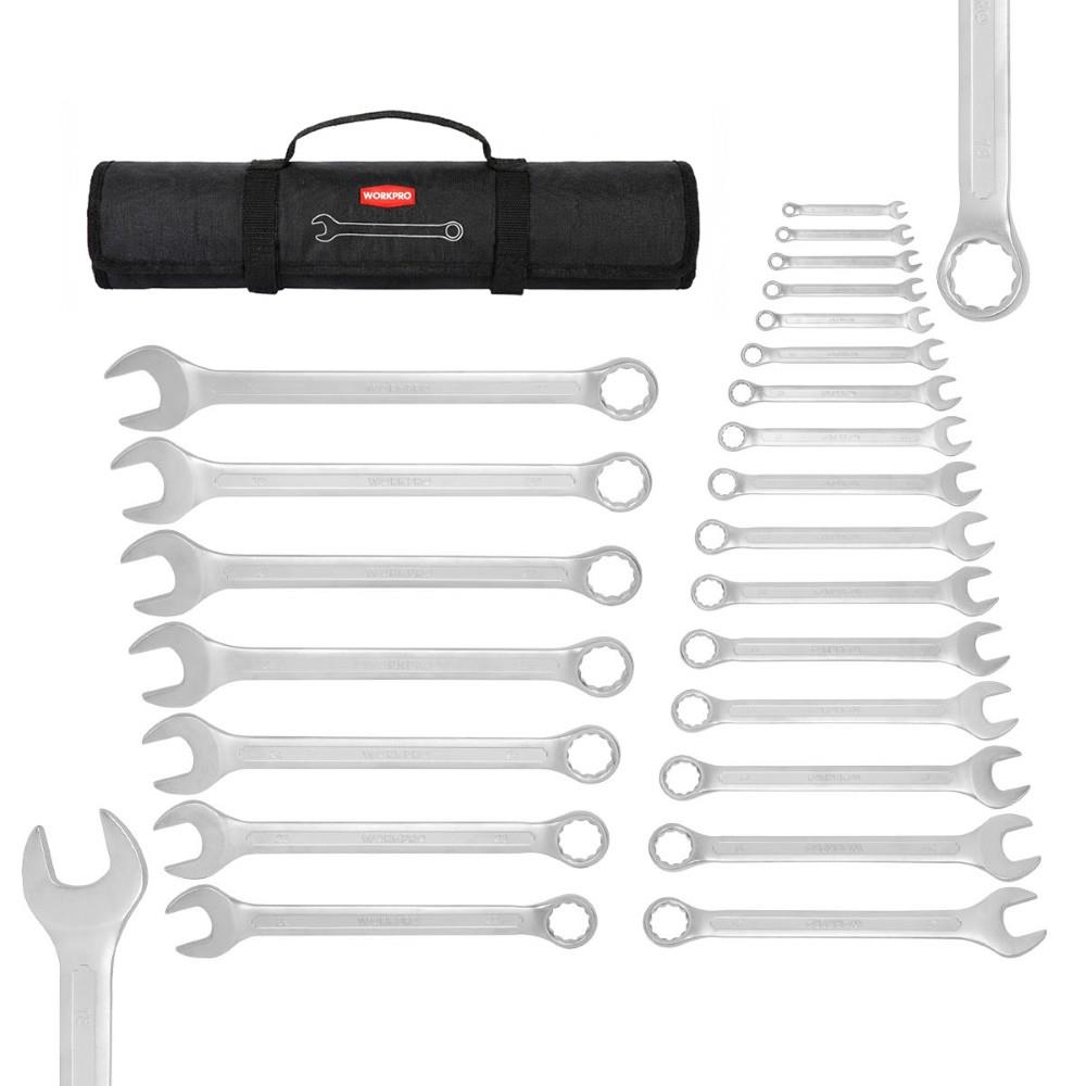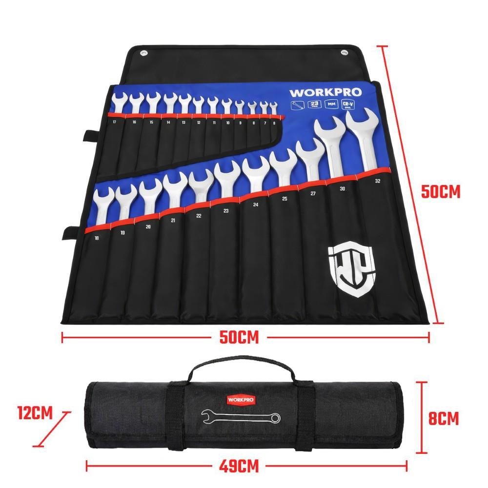 WORKPRO WP202504 6-32mm 23 Parça CR-V Profesyonel Kombine Anahtar Takımı + Bez Taşıma Kılıfı