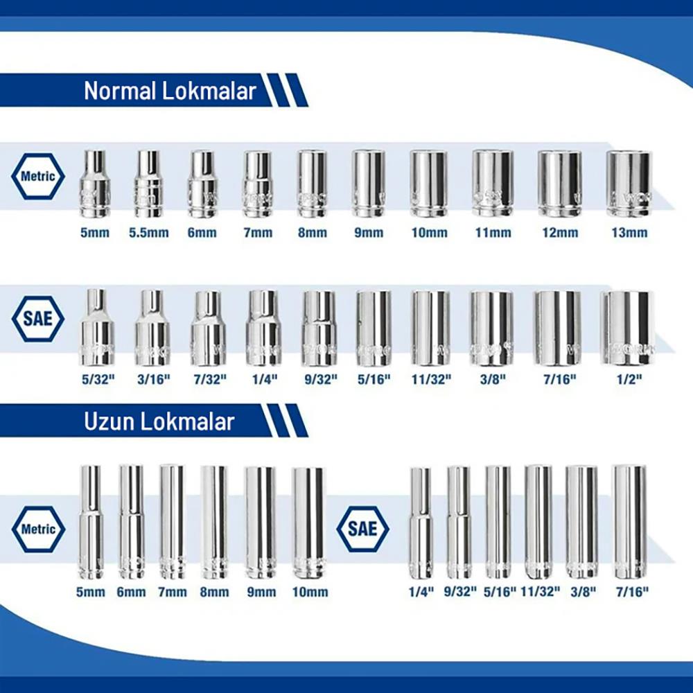 WORKPRO WP202522 1/4'’ Metrik/İnç 70 Parça Cr-V Profesyonel Lokma Takımı